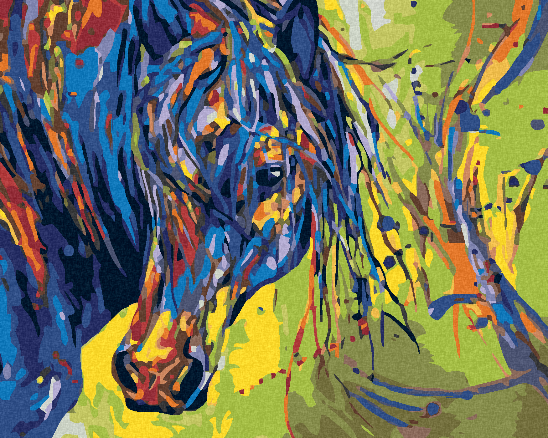 Malen nach Zahlen - FARBIGER PFERDEKOPF MIT GELBEM HINTERGRUND