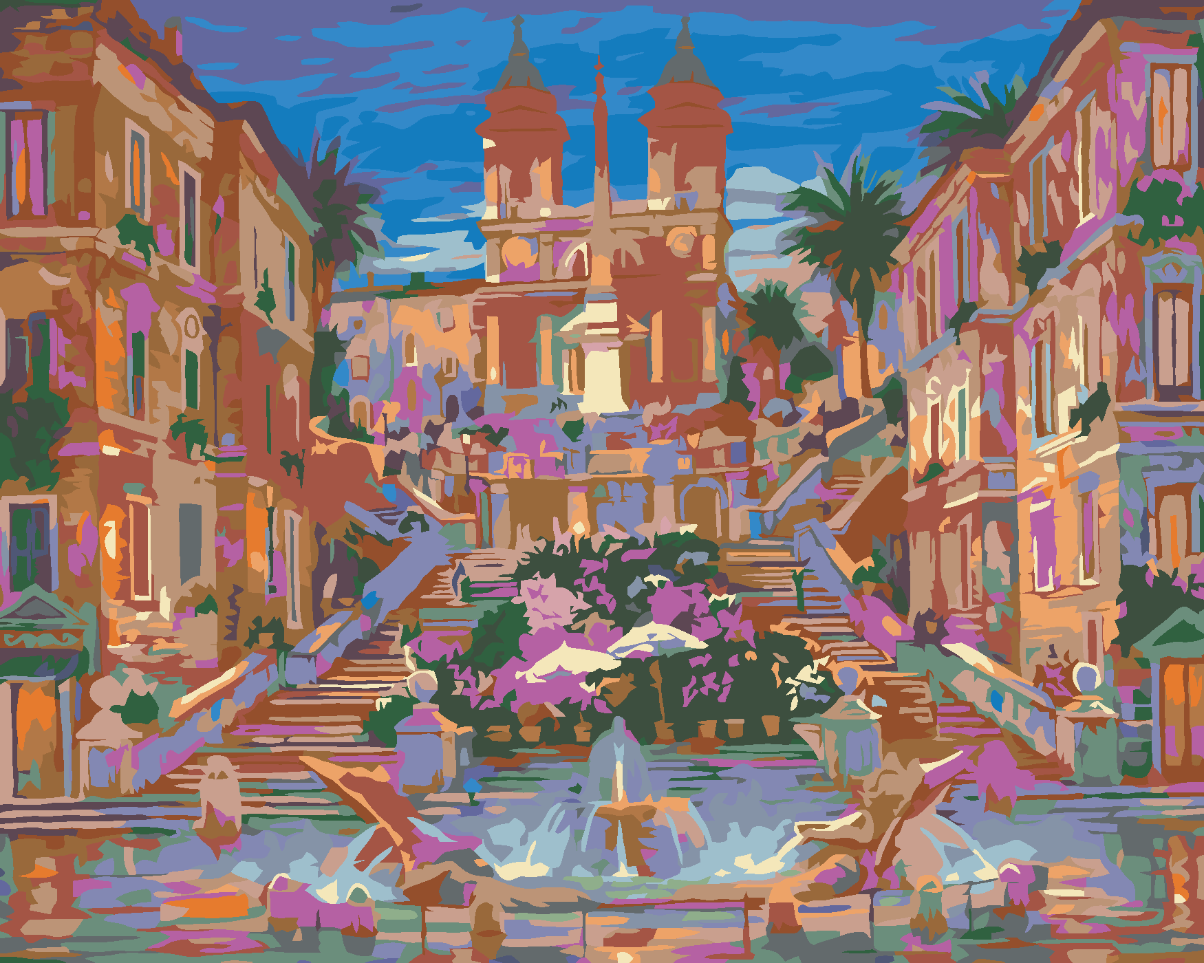 Malen nach Zahlen - FONTÄNE UND BLUMEN UNTER DEM PALAST