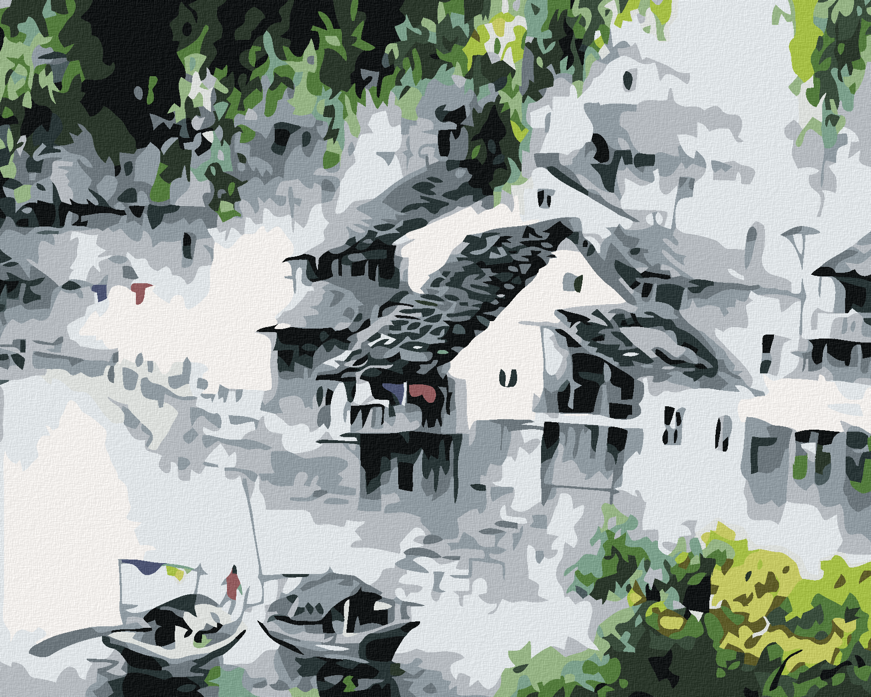 Malen nach Zahlen - HÄUSER IN JAPAN UND WASSER