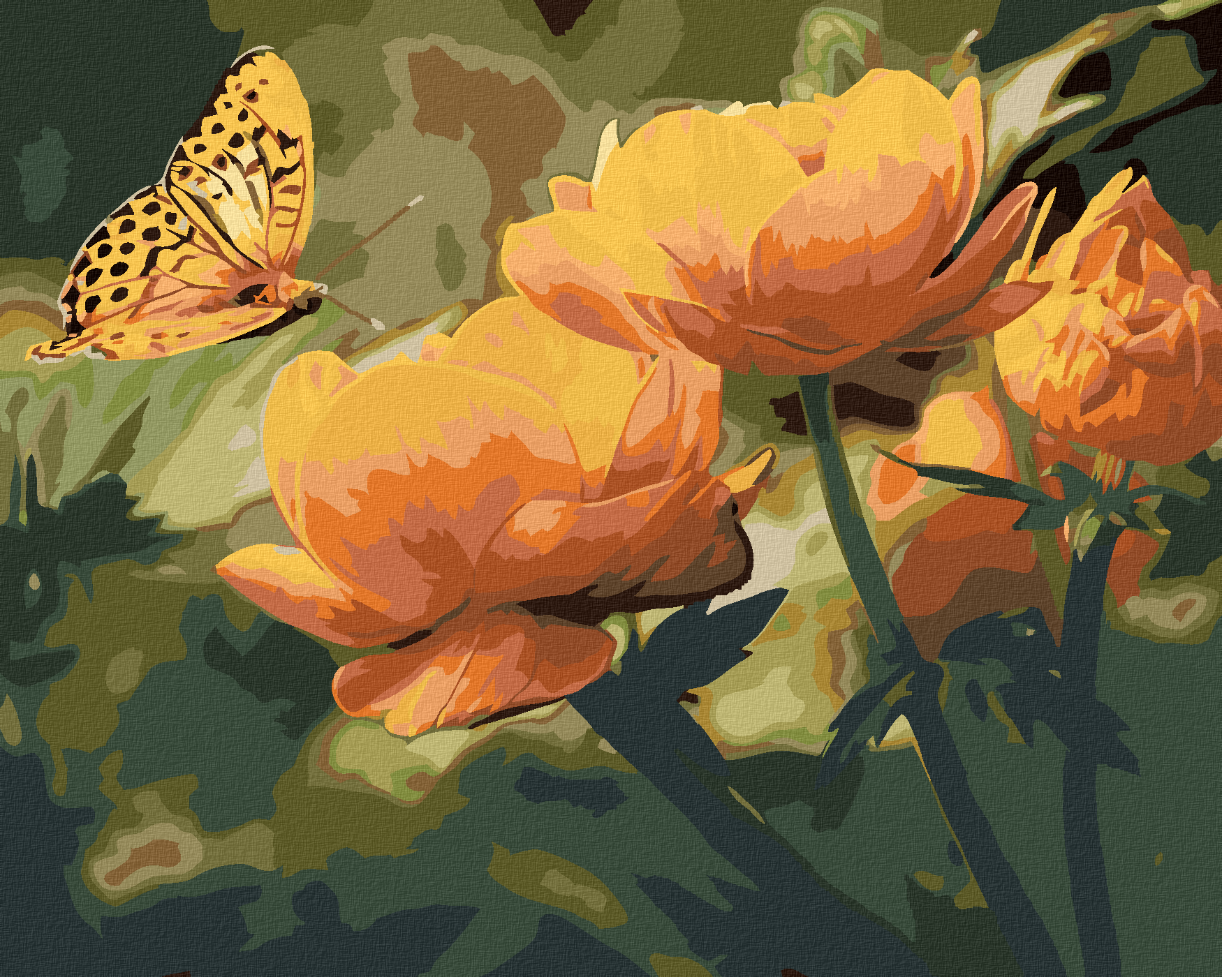 Malen nach Zahlen - SCHMETTERLING UND ORANGEFARBENE BLUMEN
