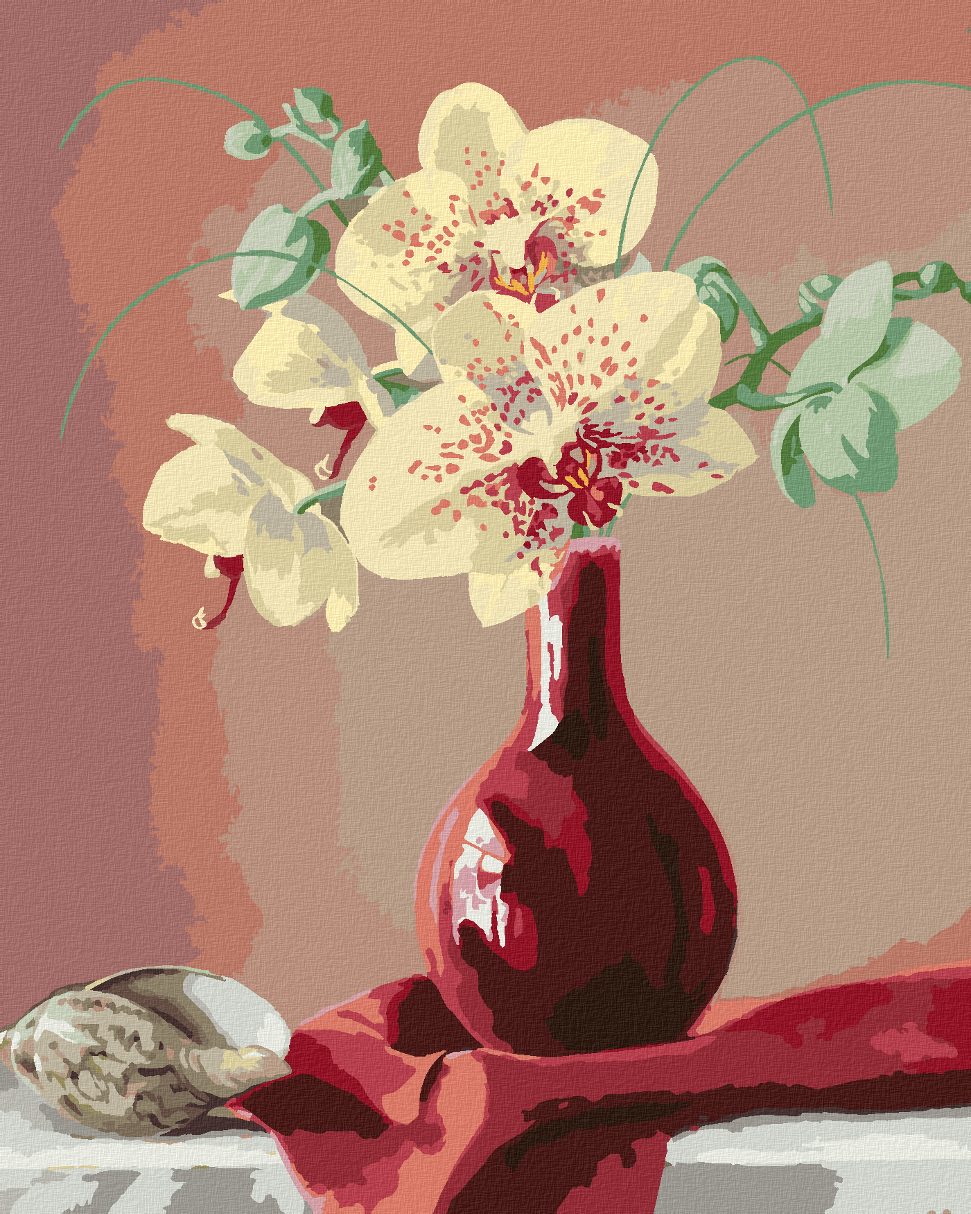 Malen nach Zahlen - STILLLEBEN ORCHIDEE IN ROTER VASE UND MUSCHELN (PIETER WAGEMANS)