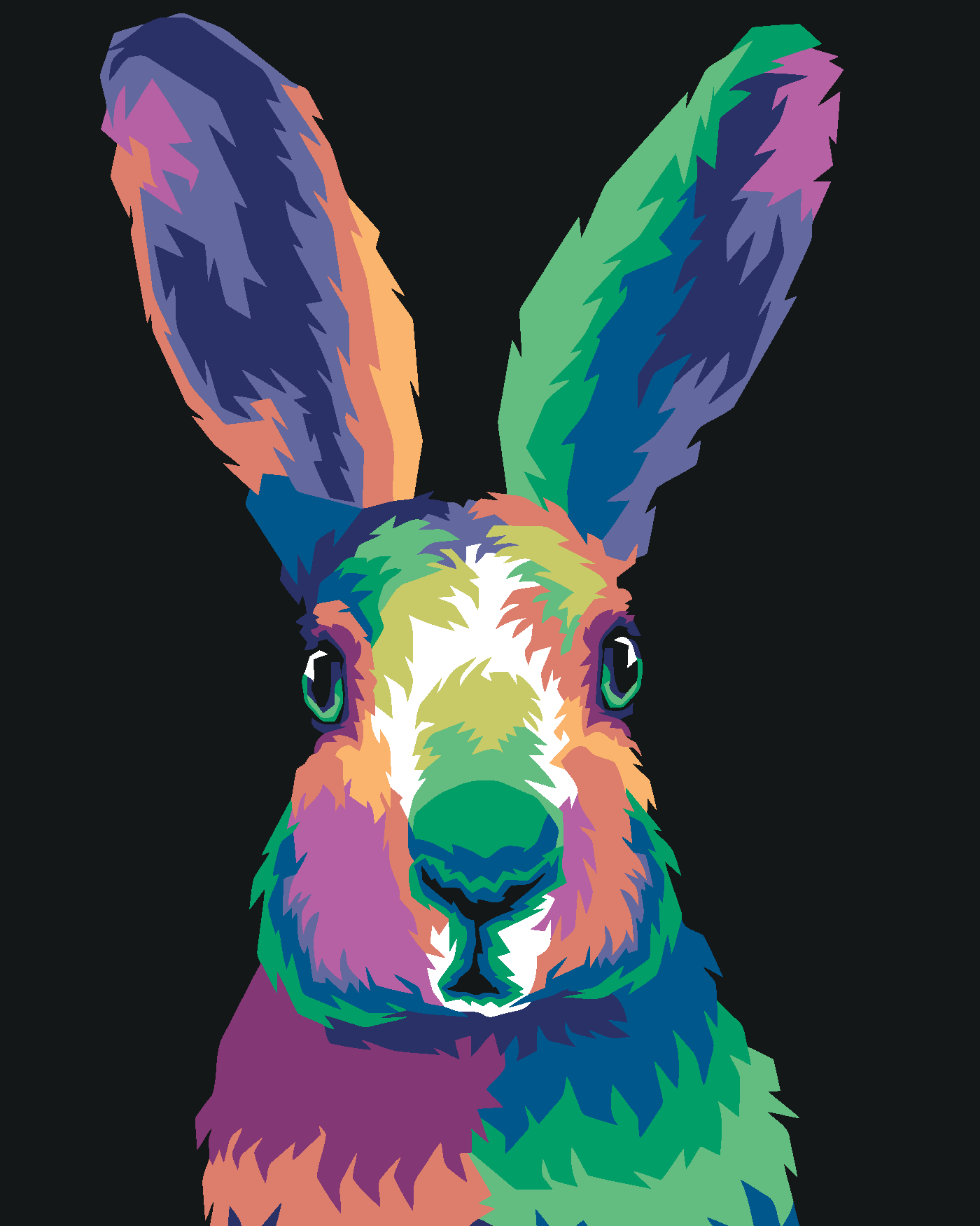 Malen nach Zahlen - POP-ART-KANINCHEN AUF SCHWARZEM HINTERGRUND