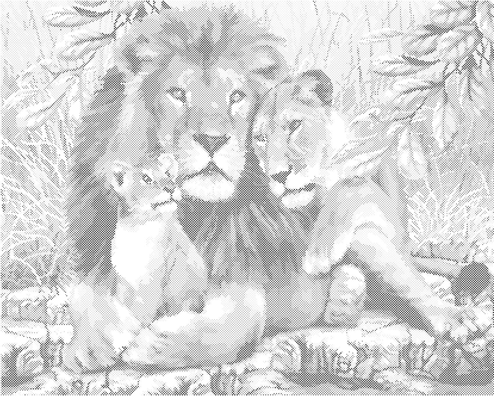 Punktmalerei - LÖWE MIT LÖWIN UND LÖWENJUNGEN