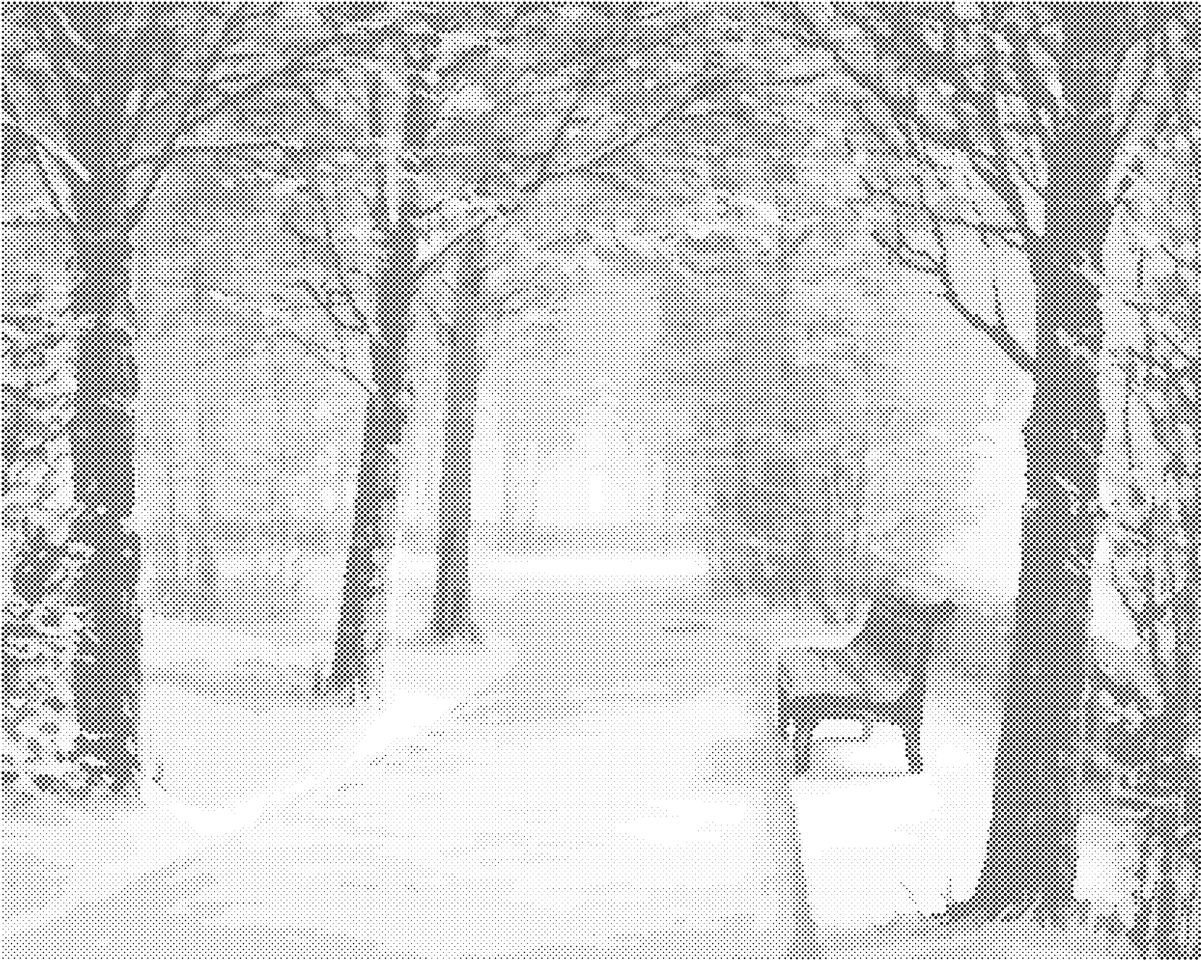Punktmalerei - BANK IN EINEM VERSCHNEITEN PARK
