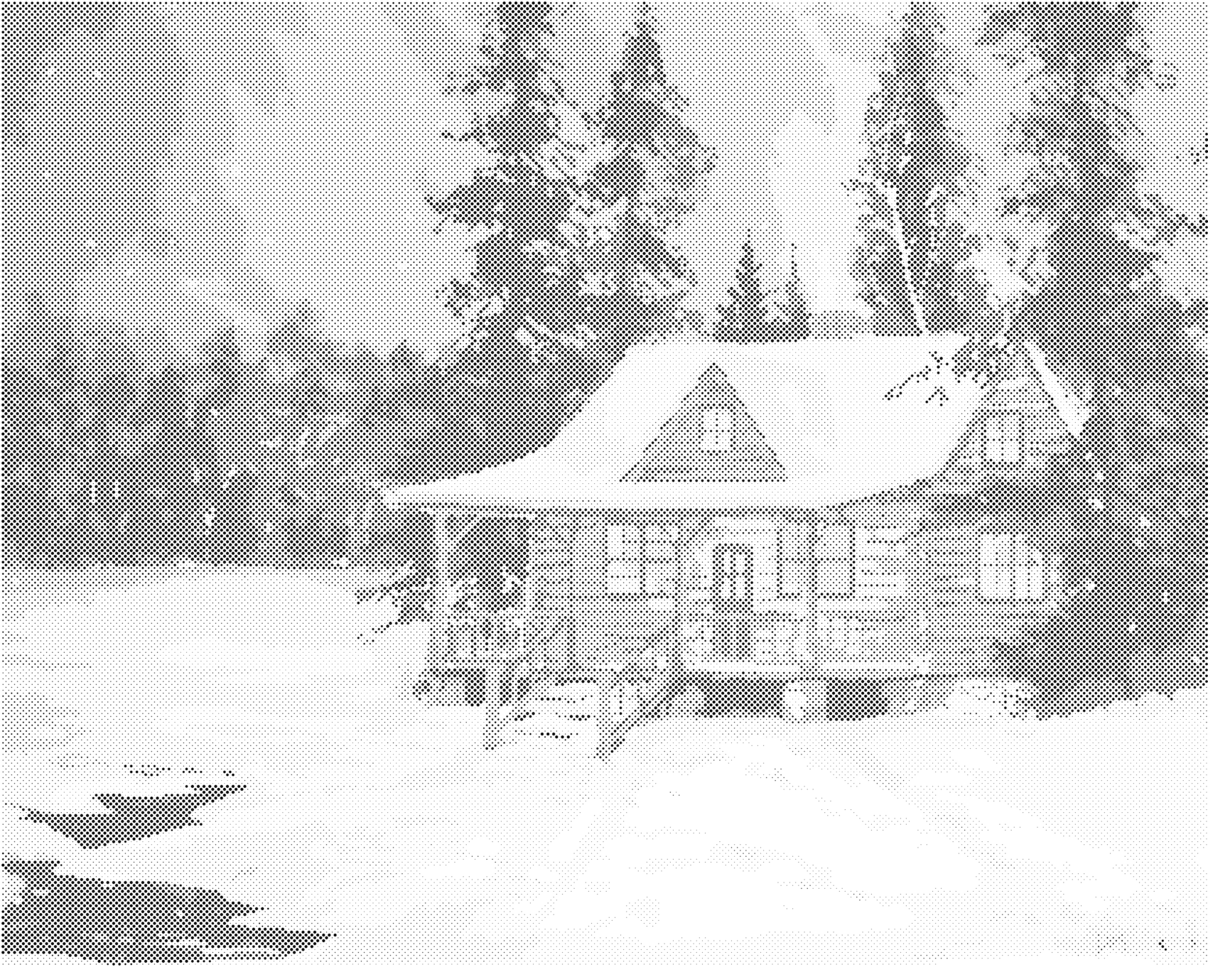 Punktmalerei - BLOCKHAUS IM WINTERWALD
