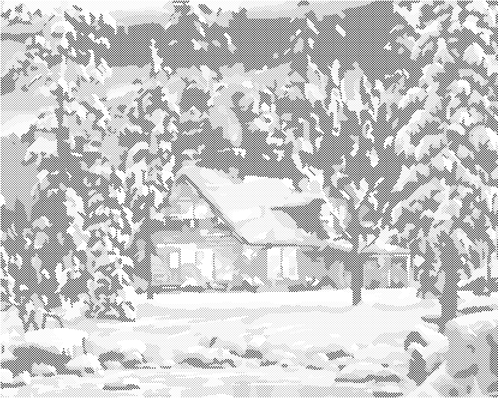 Punktmalerei - VERSCHNEITE BLOCKHÜTTE IM WALD