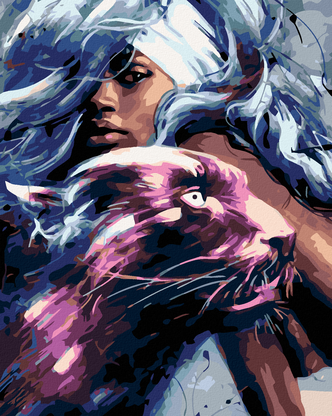 Malen nach Zahlen - FRAU UND KATZENARTIGES TIER