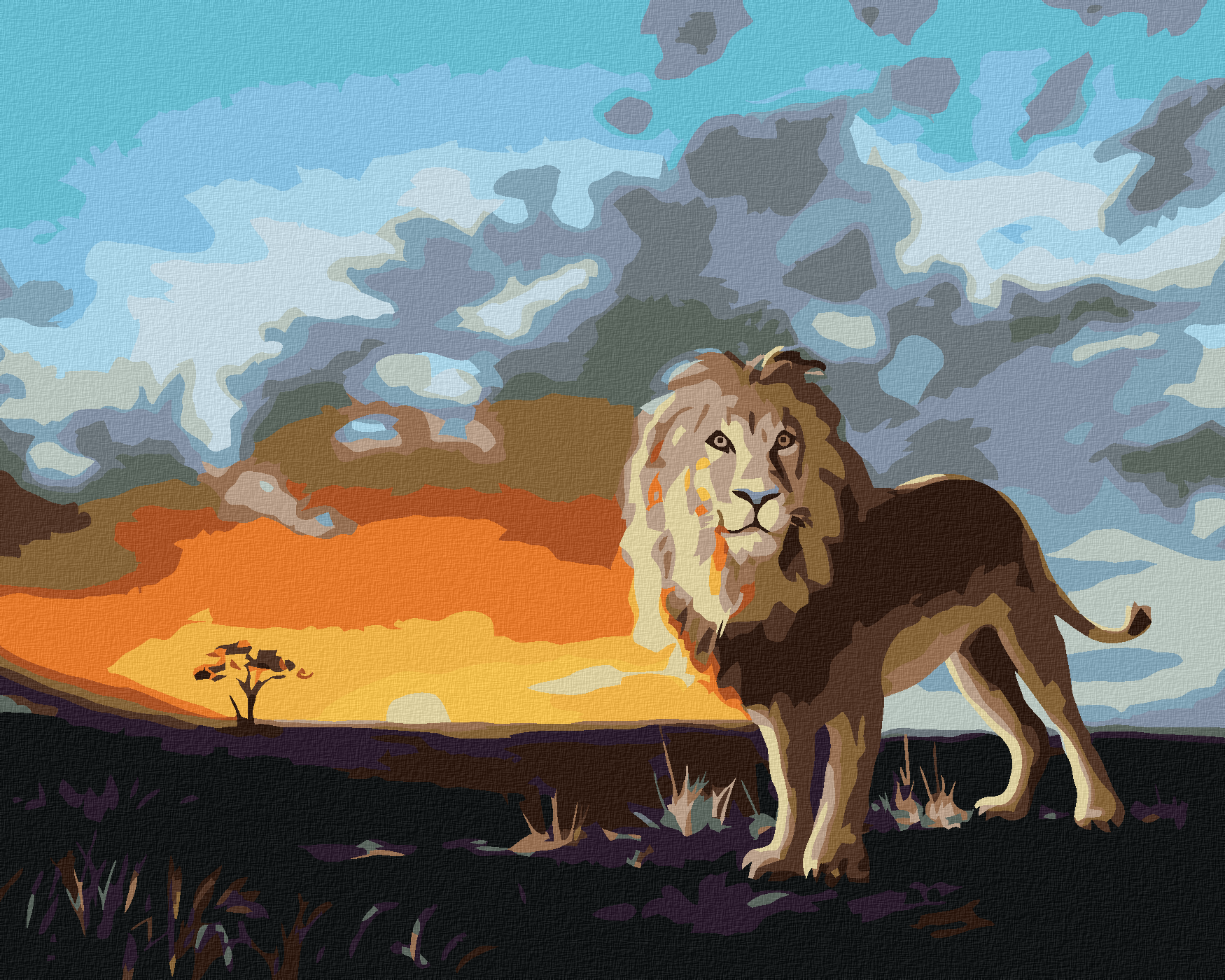 Malen nach Zahlen - LÖWE BEI SONNENUNTERGANG (D. RUSTY RUST)