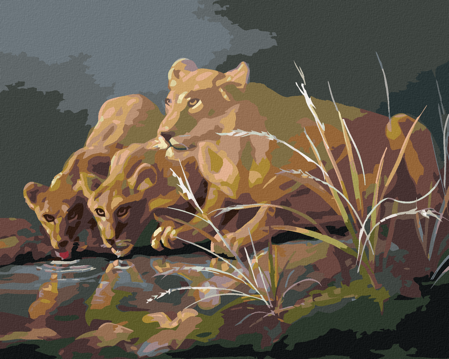 Malen nach Zahlen - LÖWIN AN EINER WASSERSTELLE IN DER DUNKELHEIT (D. RUSTY RUST)