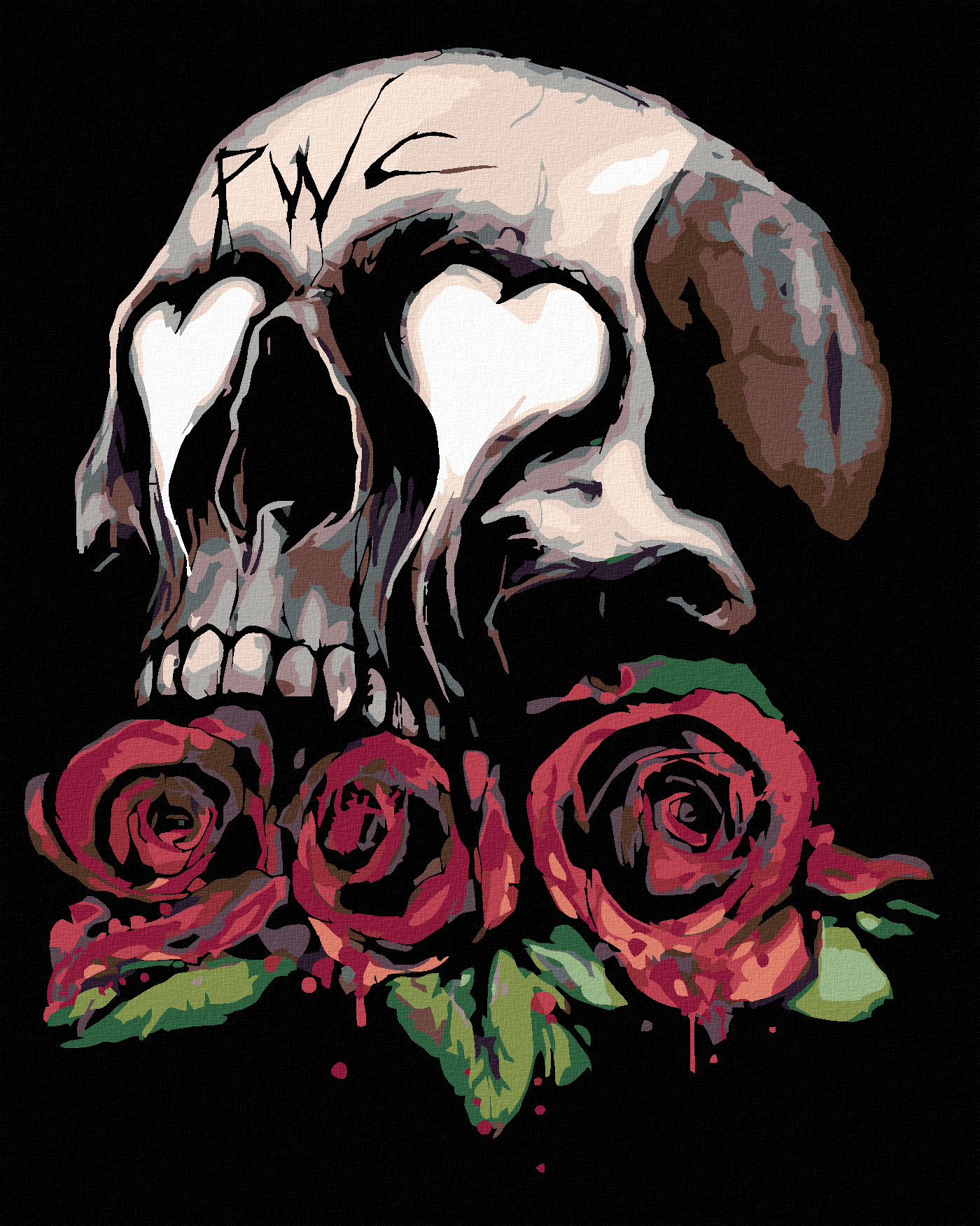 Malen nach Zahlen - TOTENKOPF UND DREI ROTE ROSEN