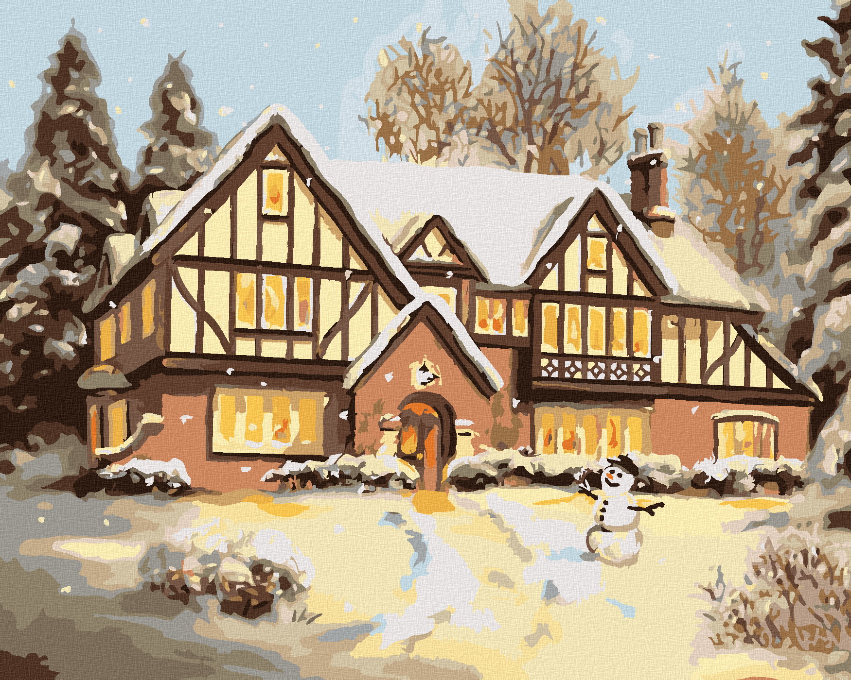 Malen nach Zahlen - VERSCHNEITES HAUS MIT SCHNEEMANN (D. RUSTY RUST)