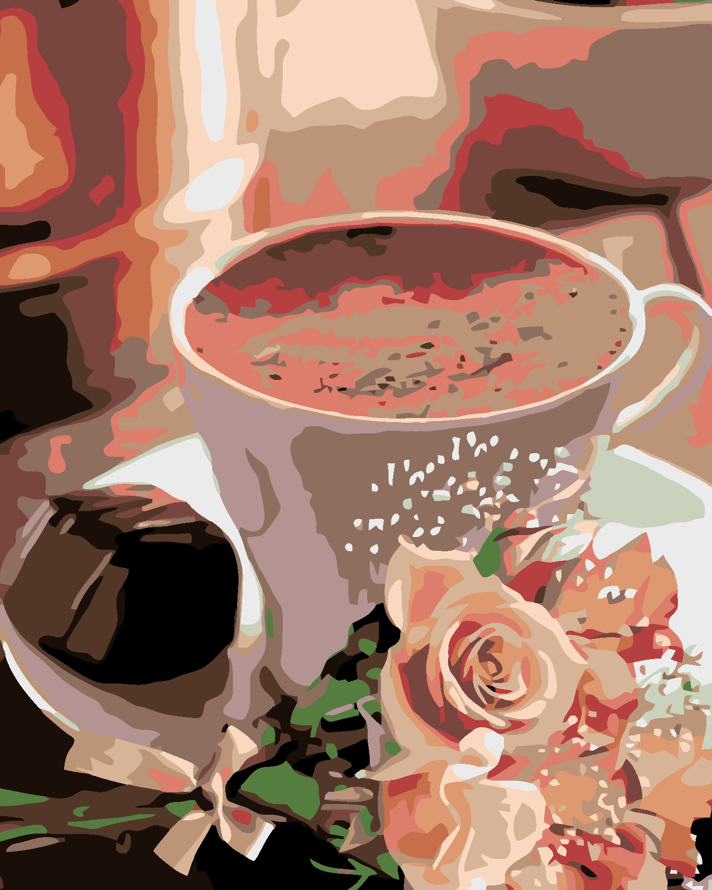 Malen nach Zahlen - HEIßE SCHOKOLADE UND EIN ROSENSTRAUß