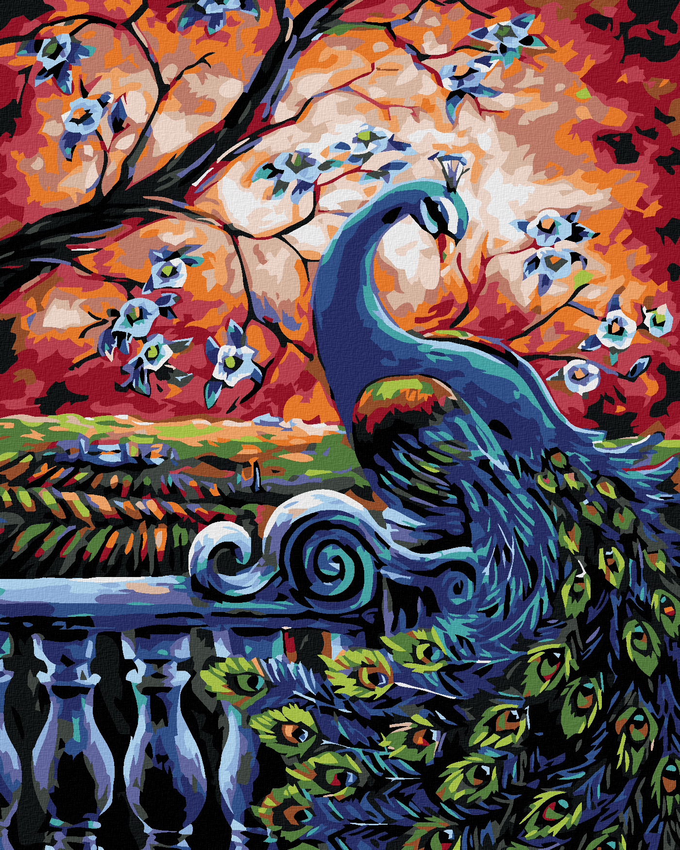 Malen nach Zahlen - PFAU UNTER BLÜHENDEM BAUM