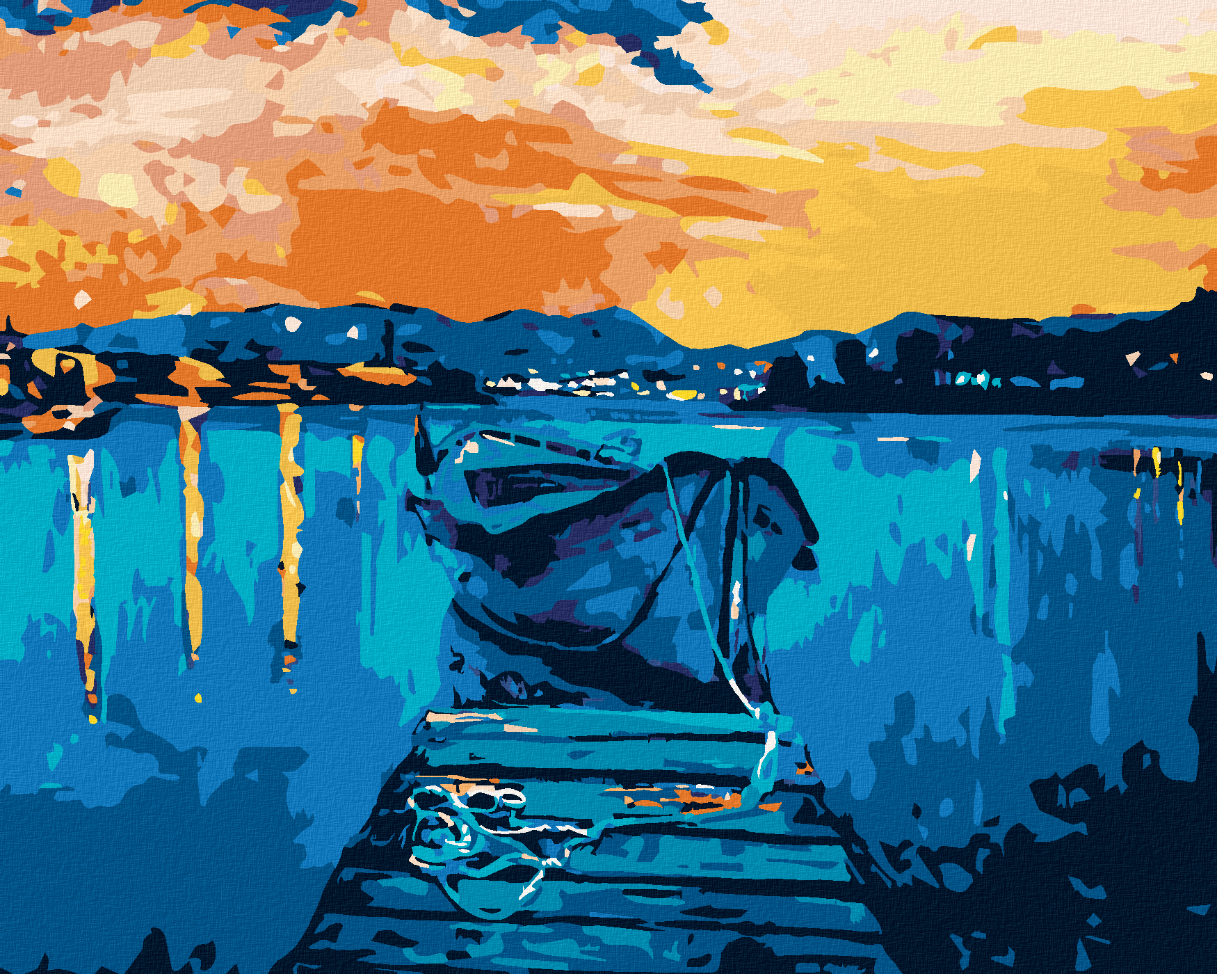 Diamond painting - ANLEGESTELLE MIT EINEM BOOT AUF DEM MEER
