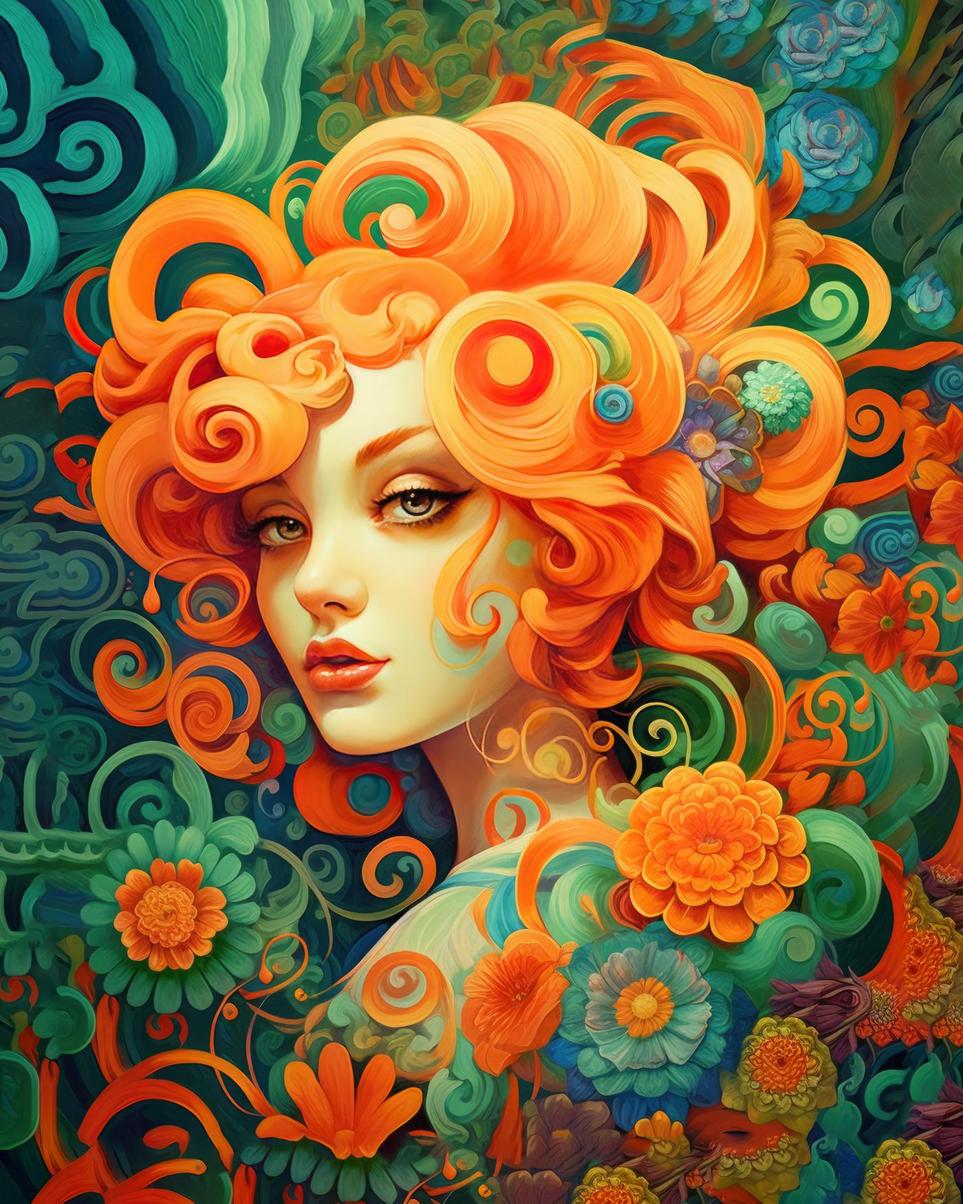 Leinwandbilder - Wizerunek kobiety z domieszką pomarańczowych kolorów