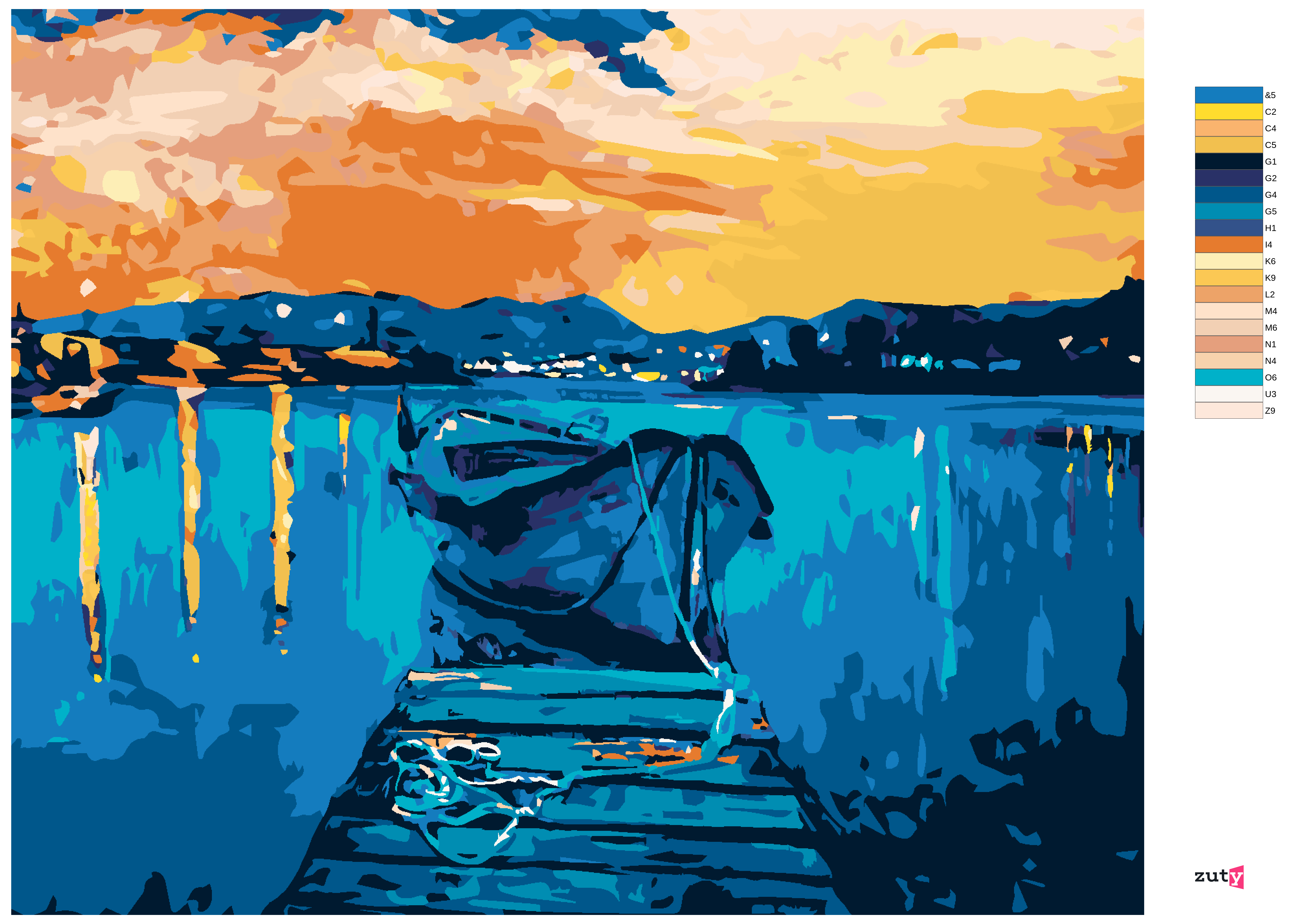 Malen nach Zahlen - ANLEGESTELLE MIT EINEM BOOT AUF DEM MEER