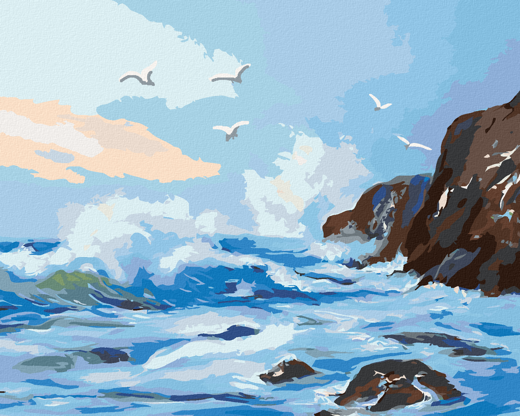 Malen nach Zahlen - AUF FELSEN PRALLENDE WELLEN UND MÖWEN (D. RUSTY RUST)