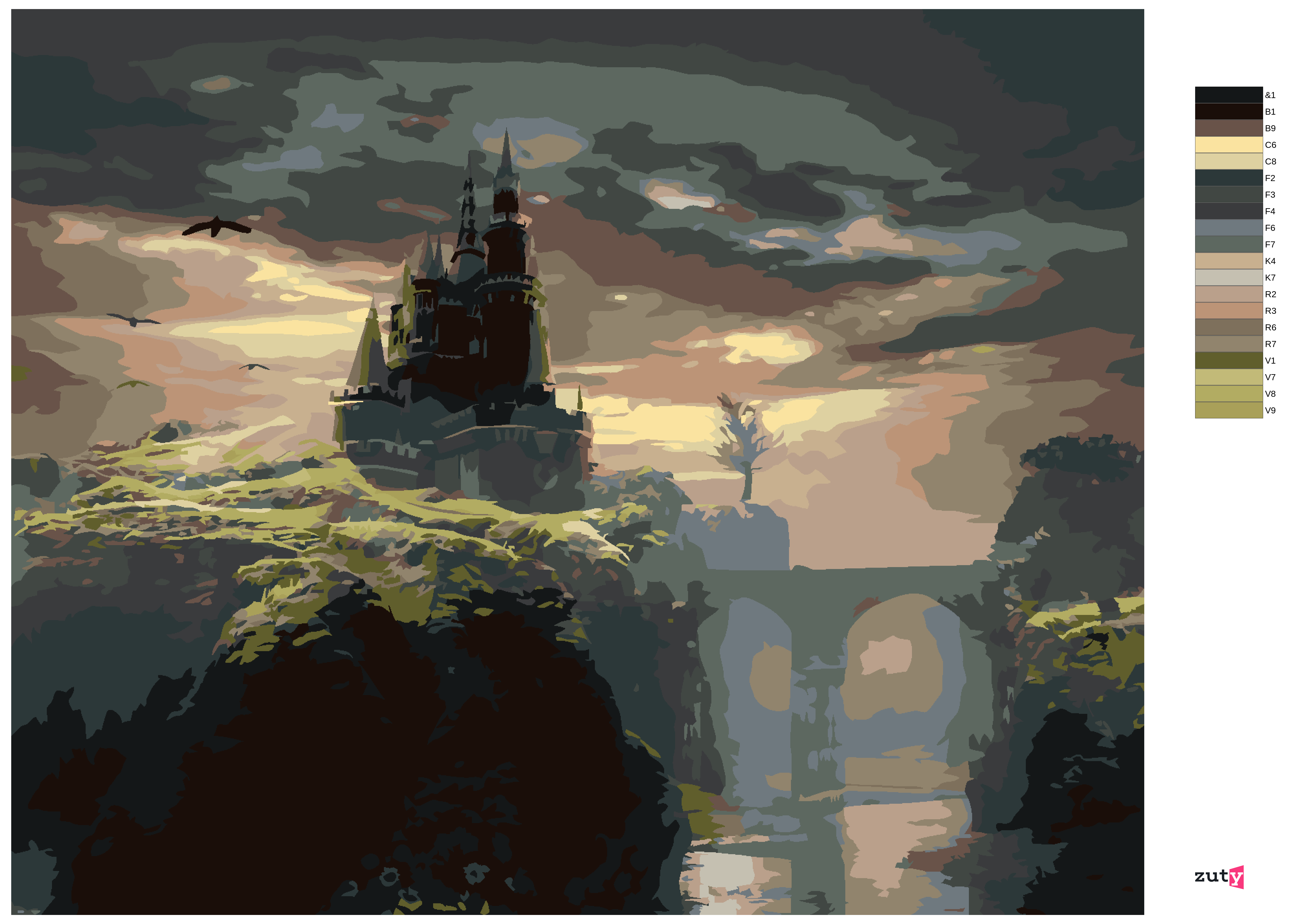 Malen nach Zahlen - BURG AUF DEM HÜGEL