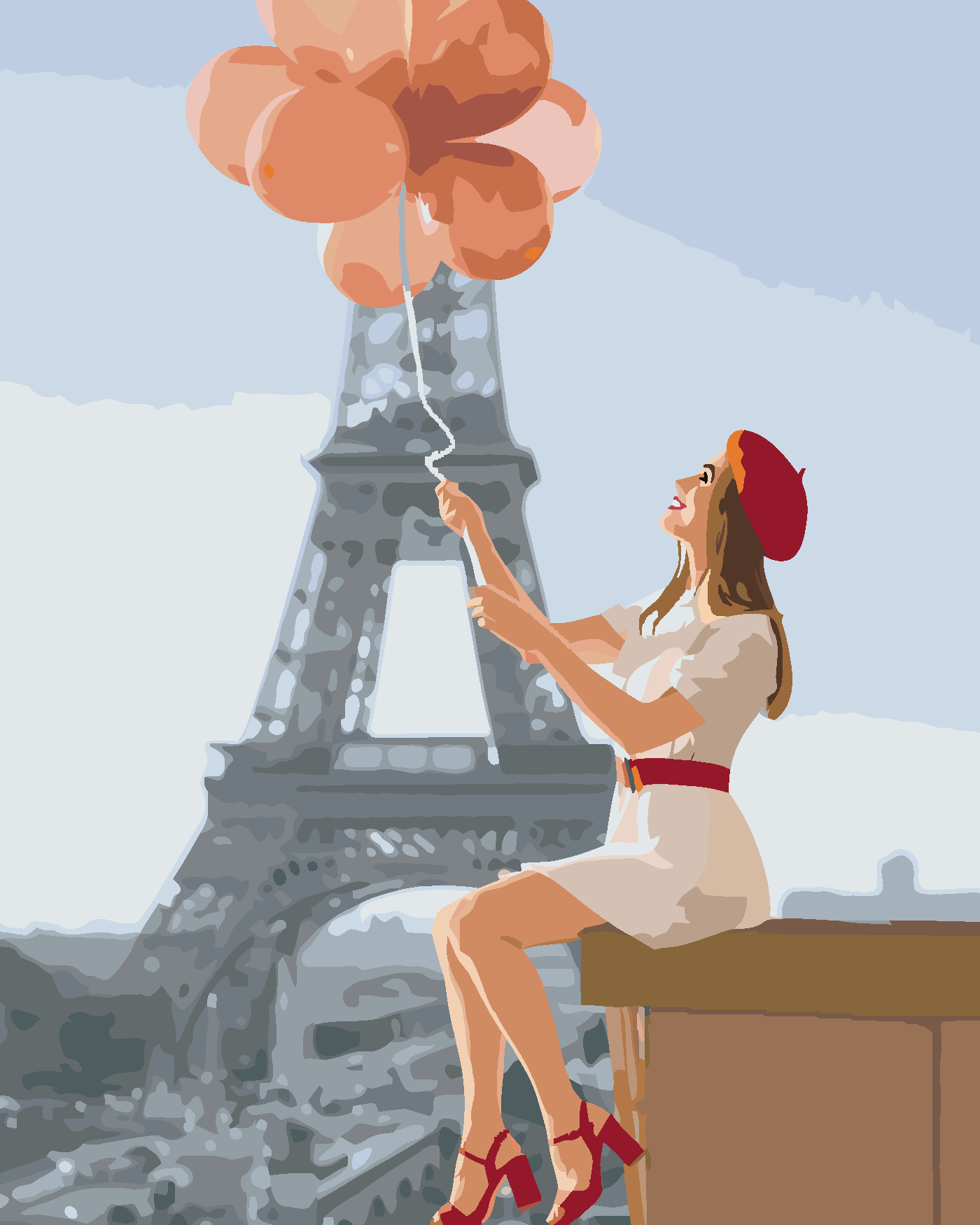 Malen nach Zahlen - EIFFELTURM UND FRAU MIT ROTEN LUFTBALLONS