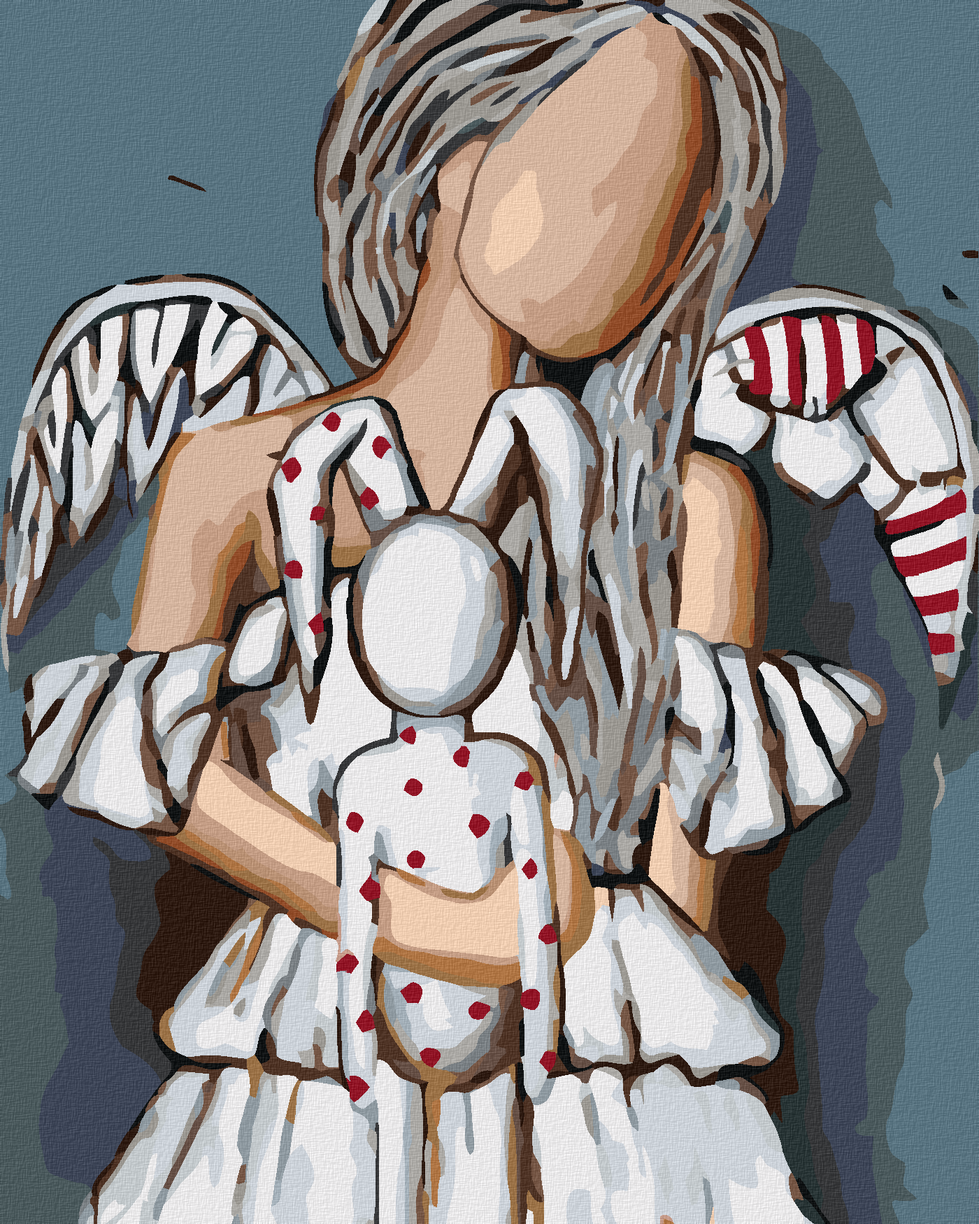 Malen nach Zahlen - ENGEL MIT PLÜSCHTIER