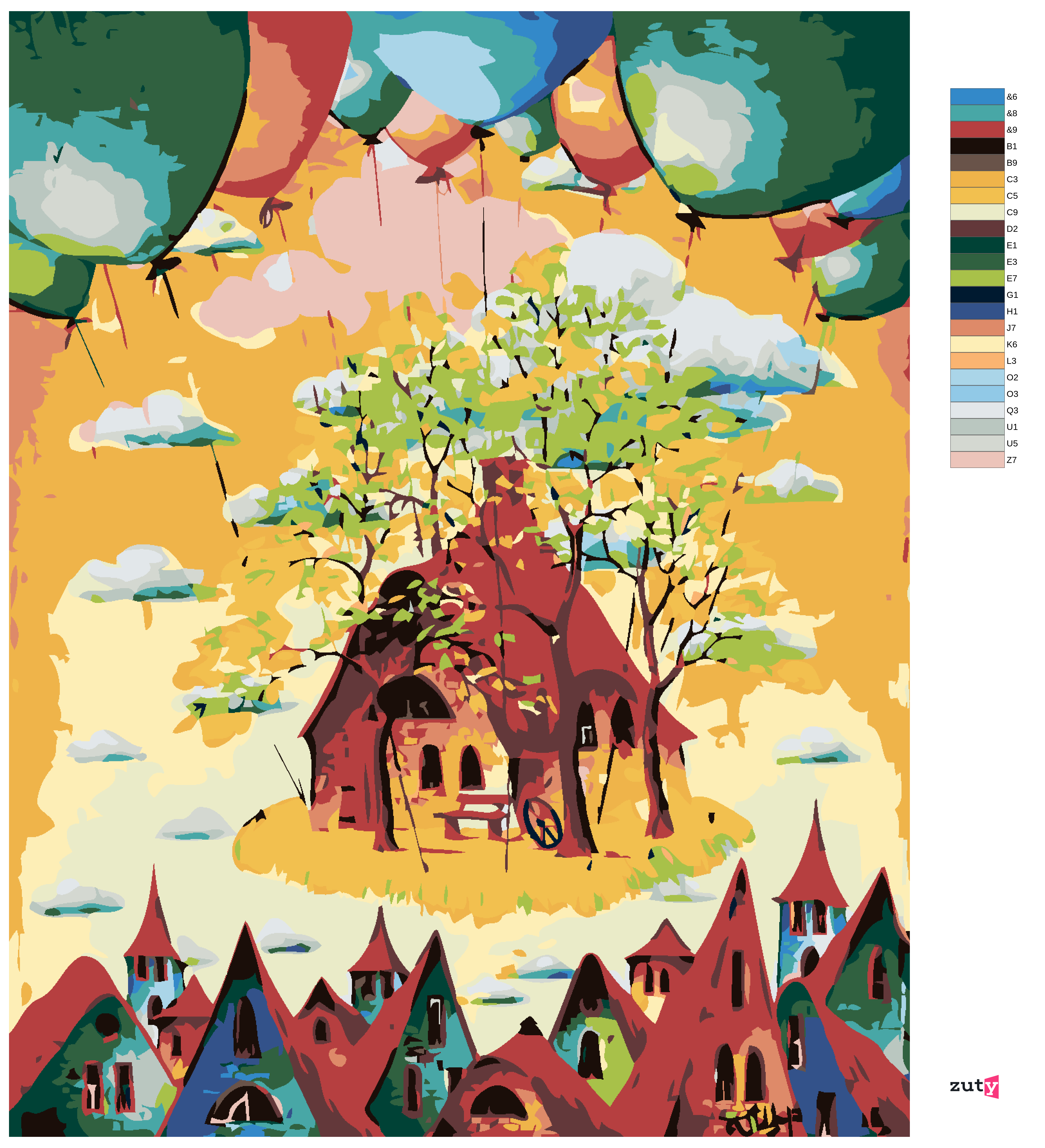 Malen nach Zahlen - FARBIGE HÄUSER MIT BALLONS