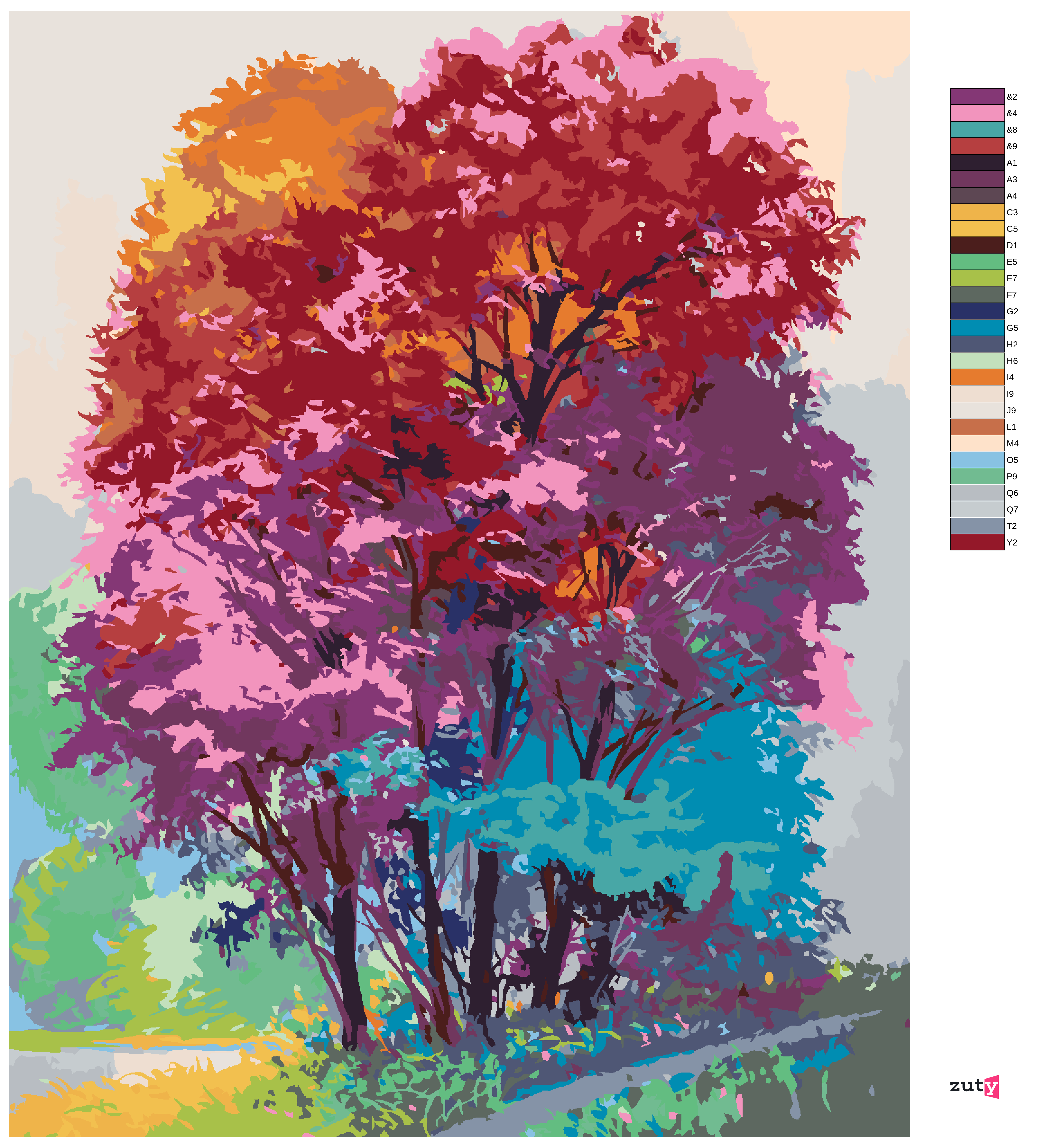 Malen nach Zahlen - FARBIGER BAUM IM WALD