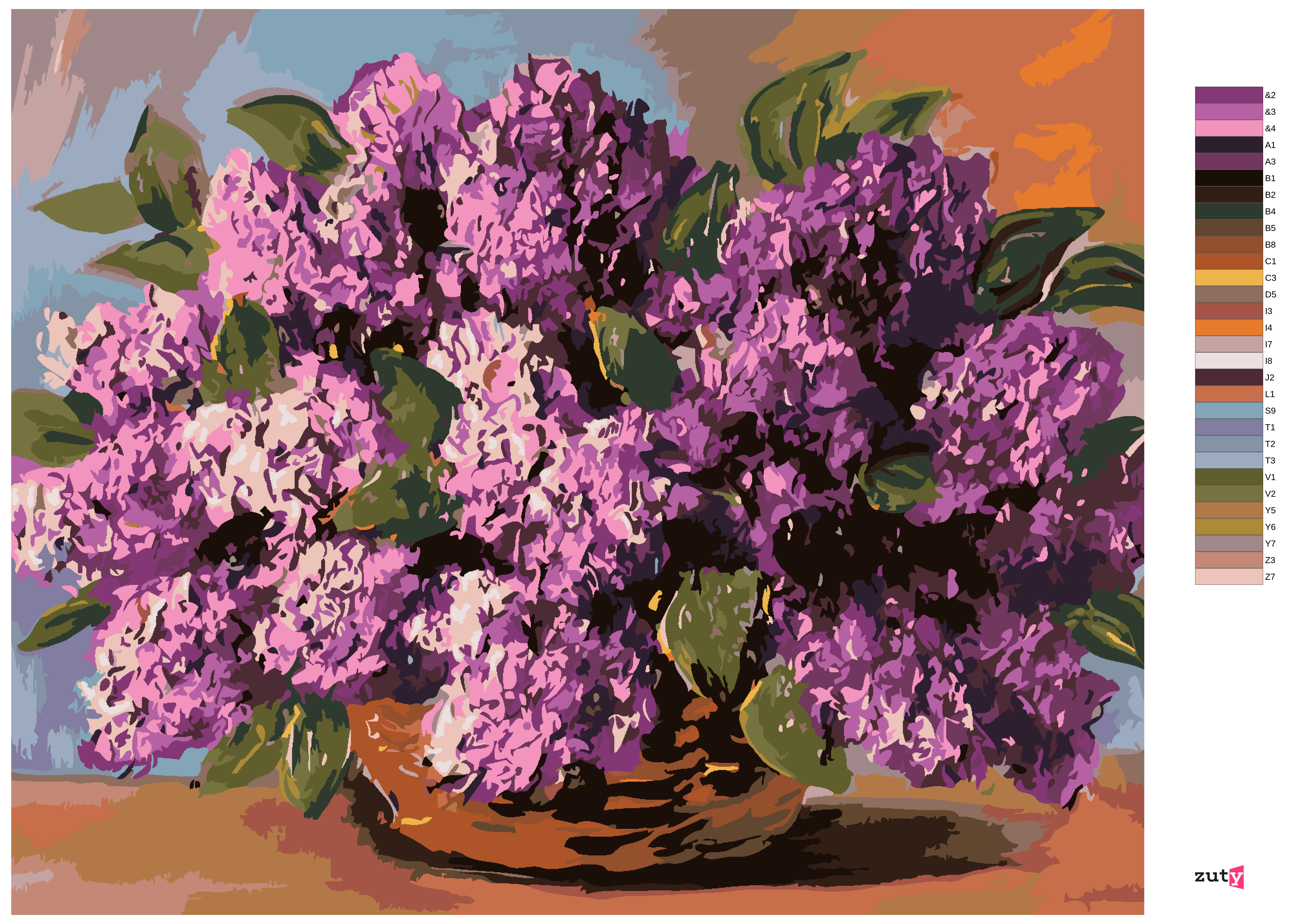 Malen nach Zahlen - FLIEDERSTRAUSS IM WEIDENKORB
