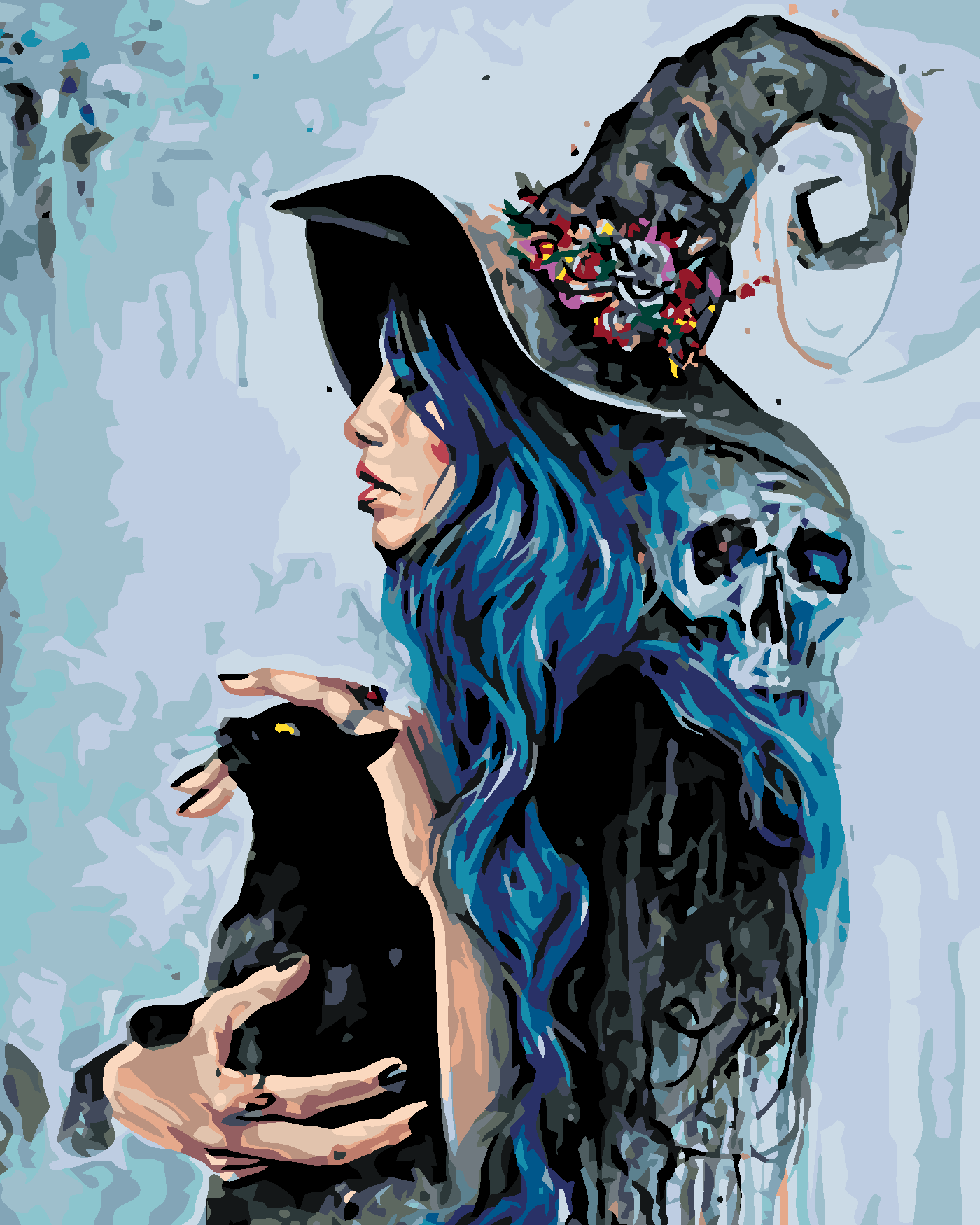 Malen nach Zahlen - HEXE MIT SCHWARZER KATZE