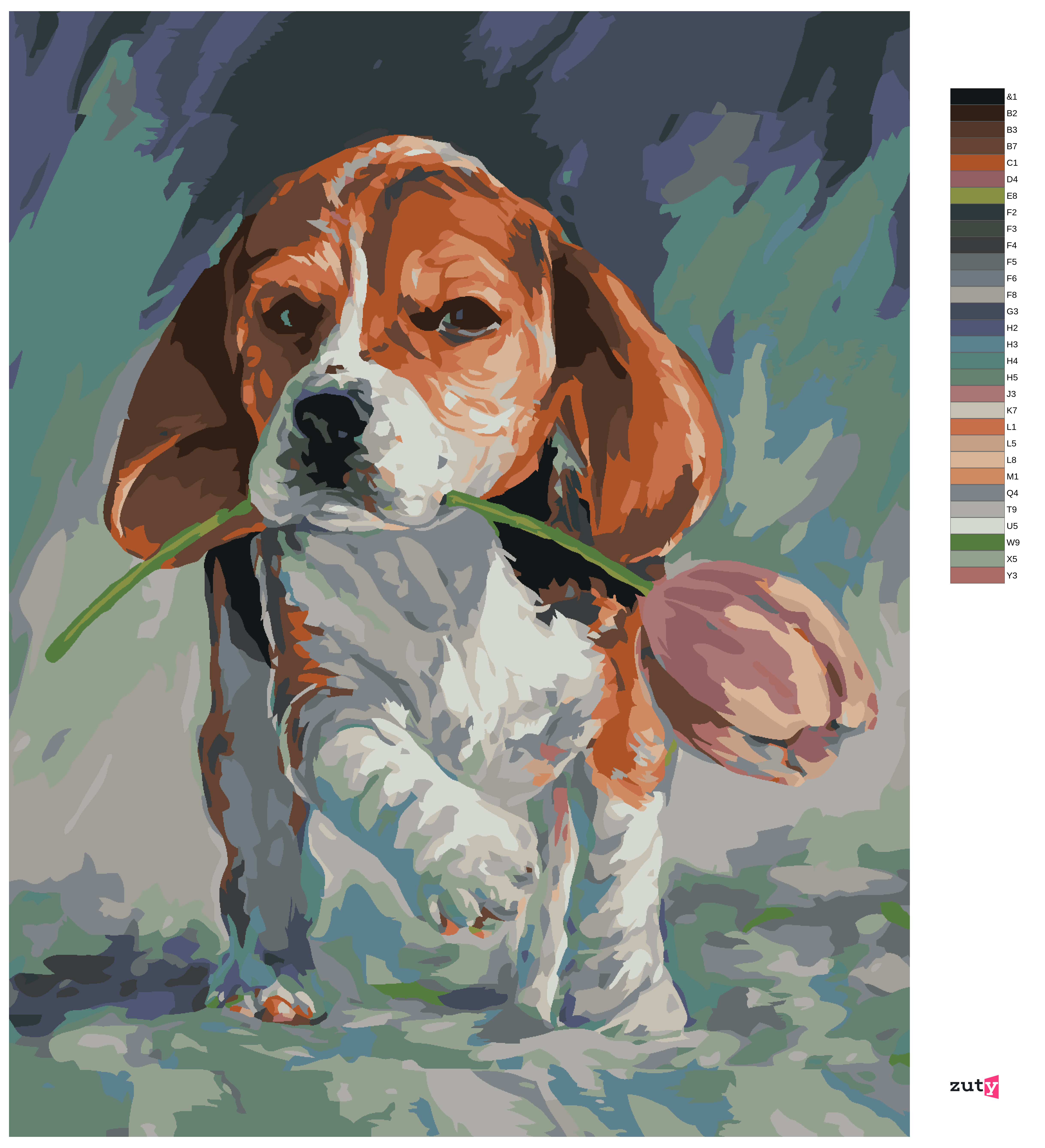 Malen nach Zahlen - HUND MIT TULPE