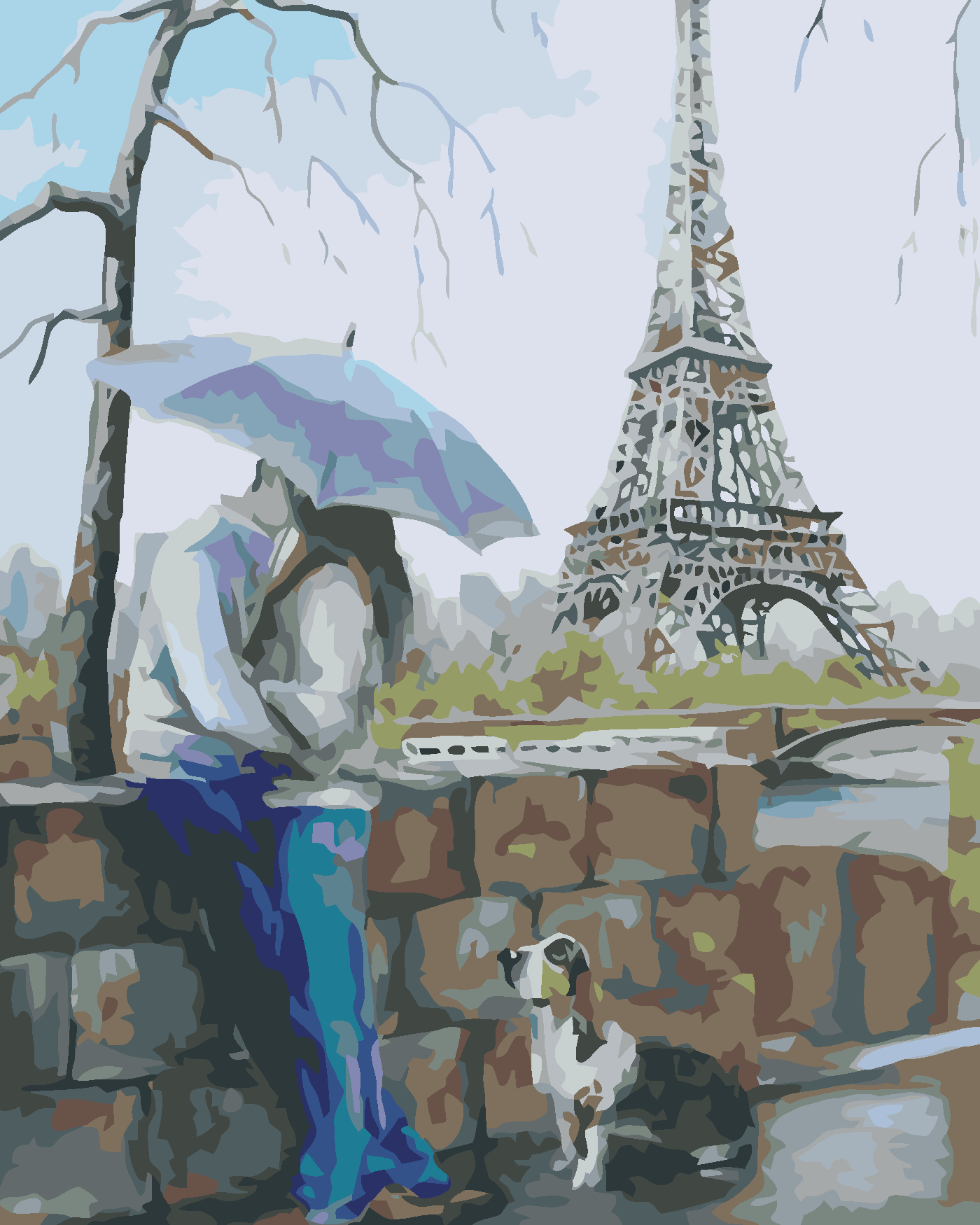 Malen nach Zahlen - LIEBHABER MIT HUND AM EIFFELTURM