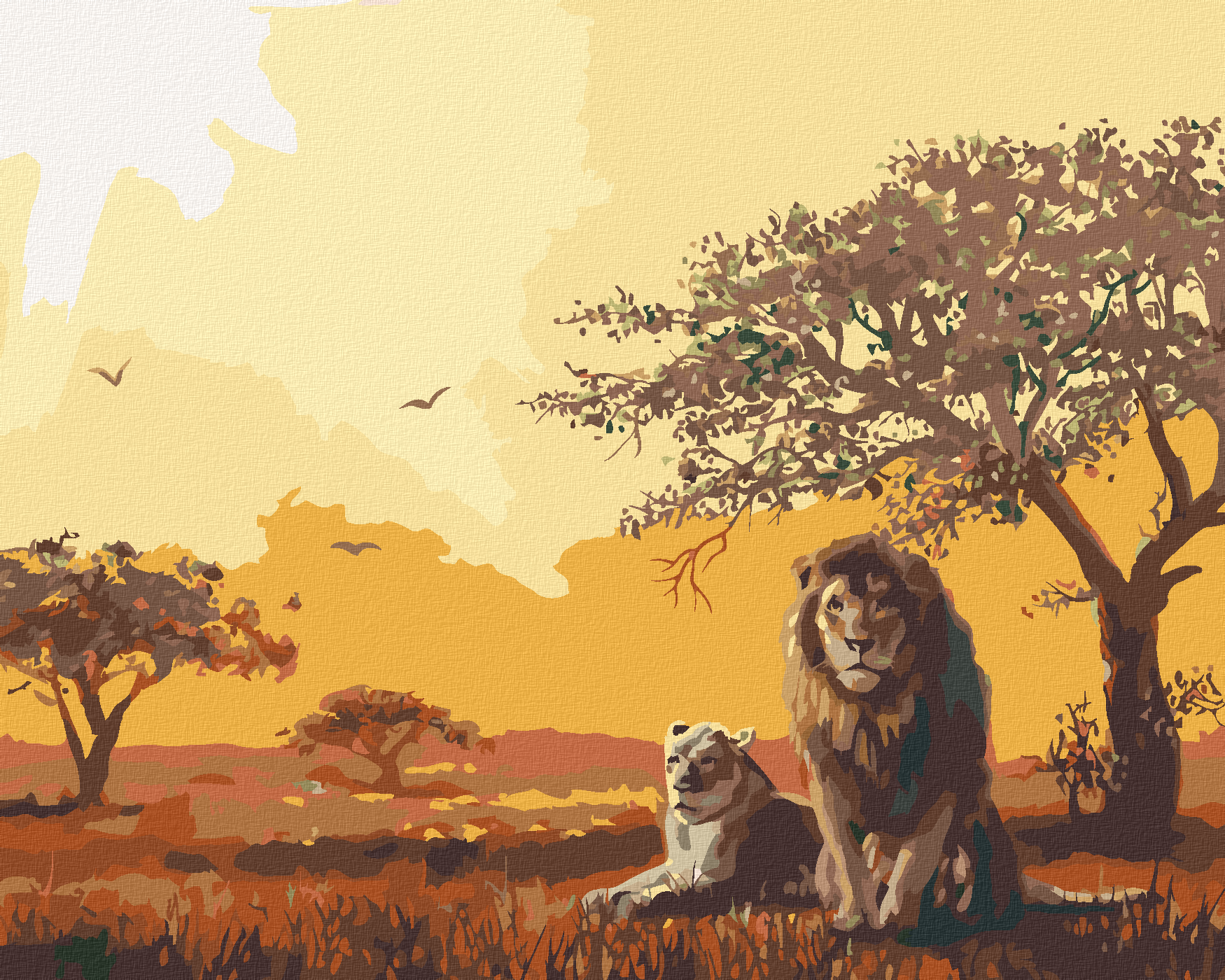 Malen nach Zahlen - LÖWE UND LÖWIN IN DER ABENDDÄMMERUNG (D. RUSTY RUST)