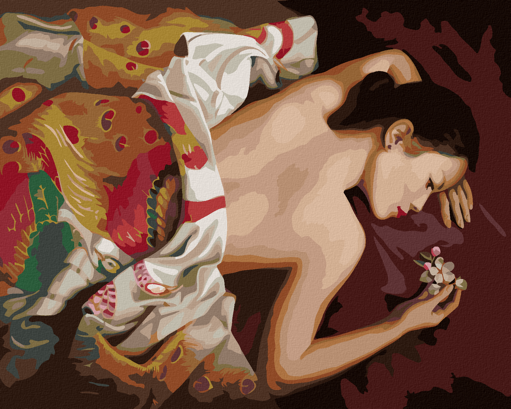 Malen nach Zahlen - NACKTE FRAU UNTER EINER VERZIERTEN DECKE MIT BLUME (PIETER WAGEMANS)