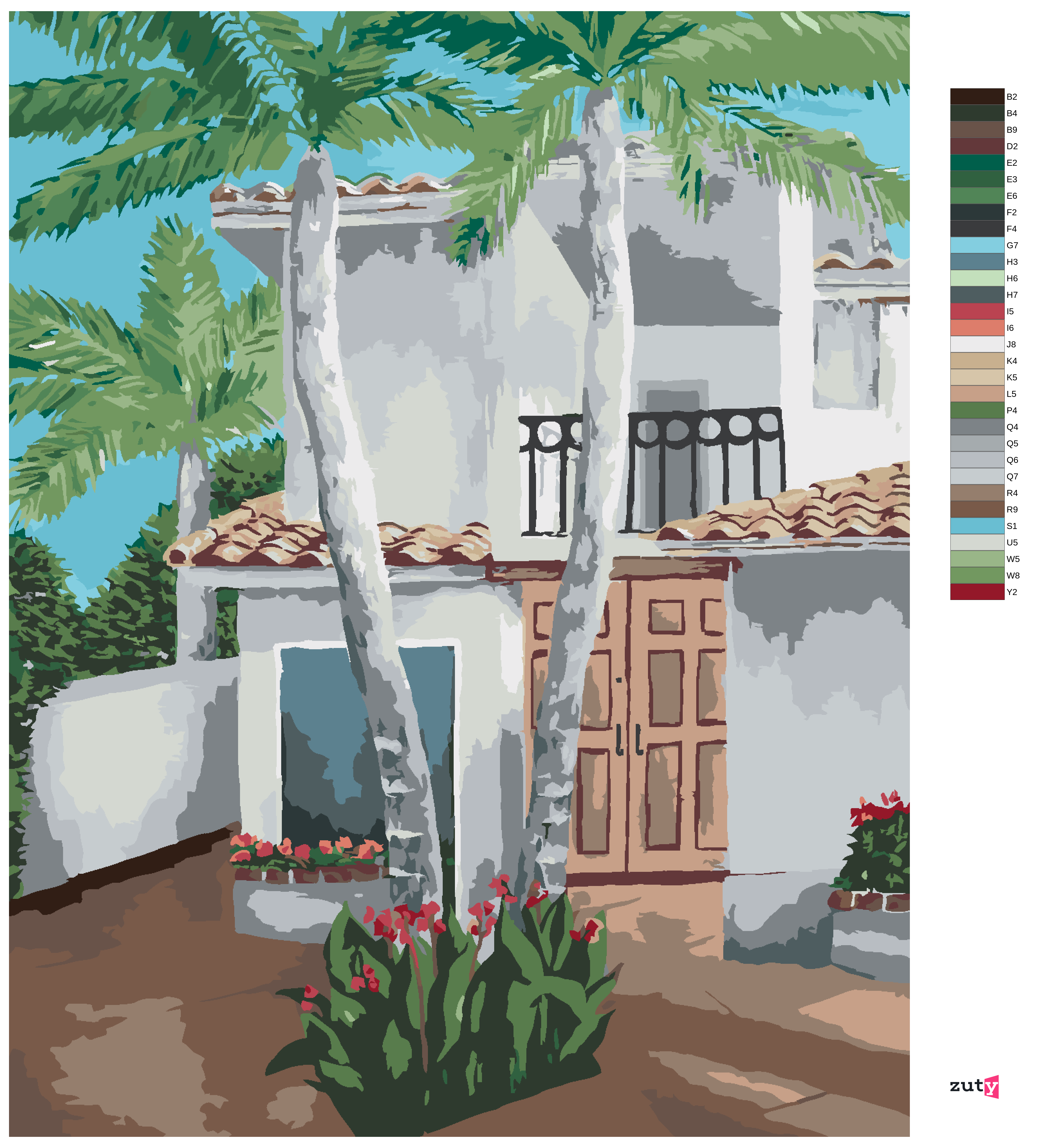 Malen nach Zahlen - PALMEN AM SOMMERHAUS