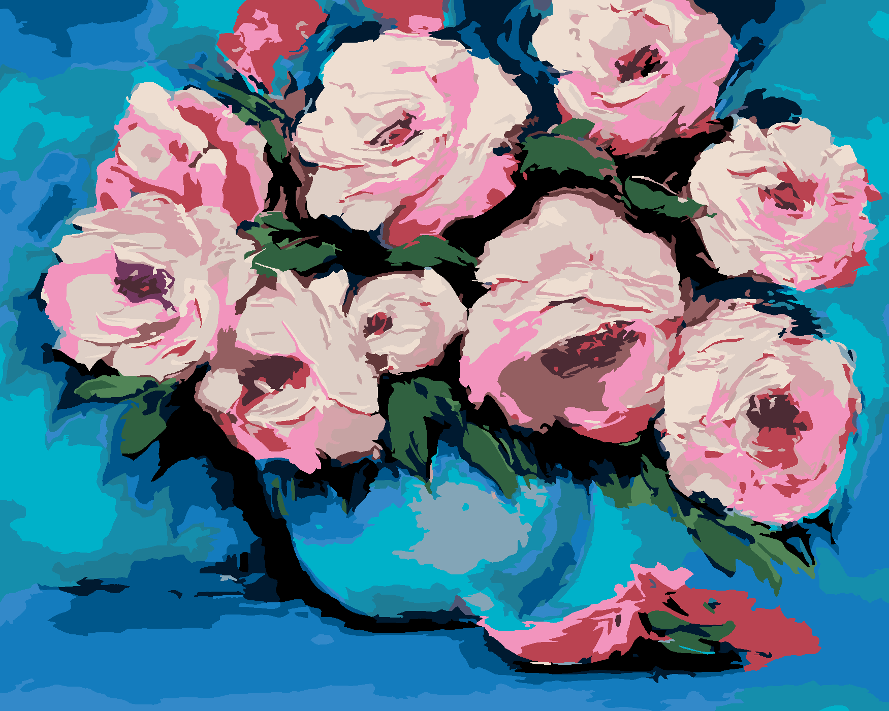 Malen nach Zahlen - PFINGSTROSEN IN EINER BLAUEN VASE