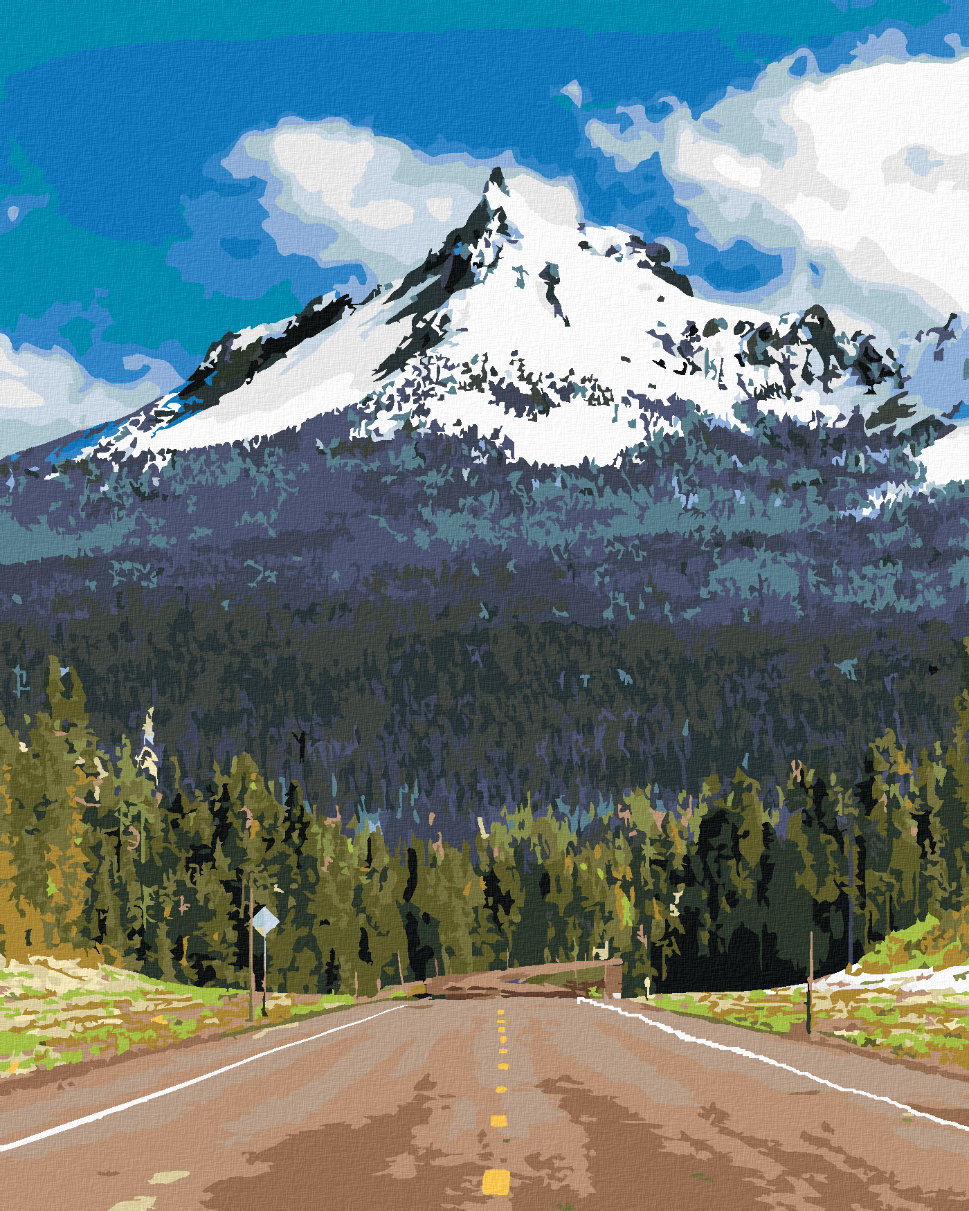 Malen nach Zahlen - SCHNEEBEDECKTER BERG UND EIN WEG (TED DAVIS)