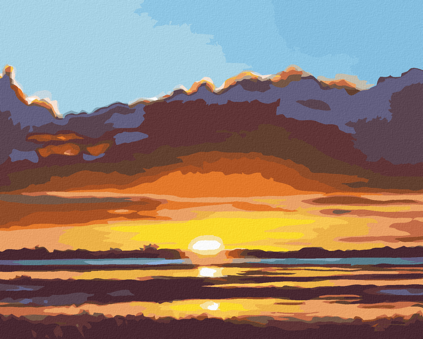 Malen nach Zahlen - UNTERGEHENDE SONNE AM WASSER (D. RUSTY RUST)