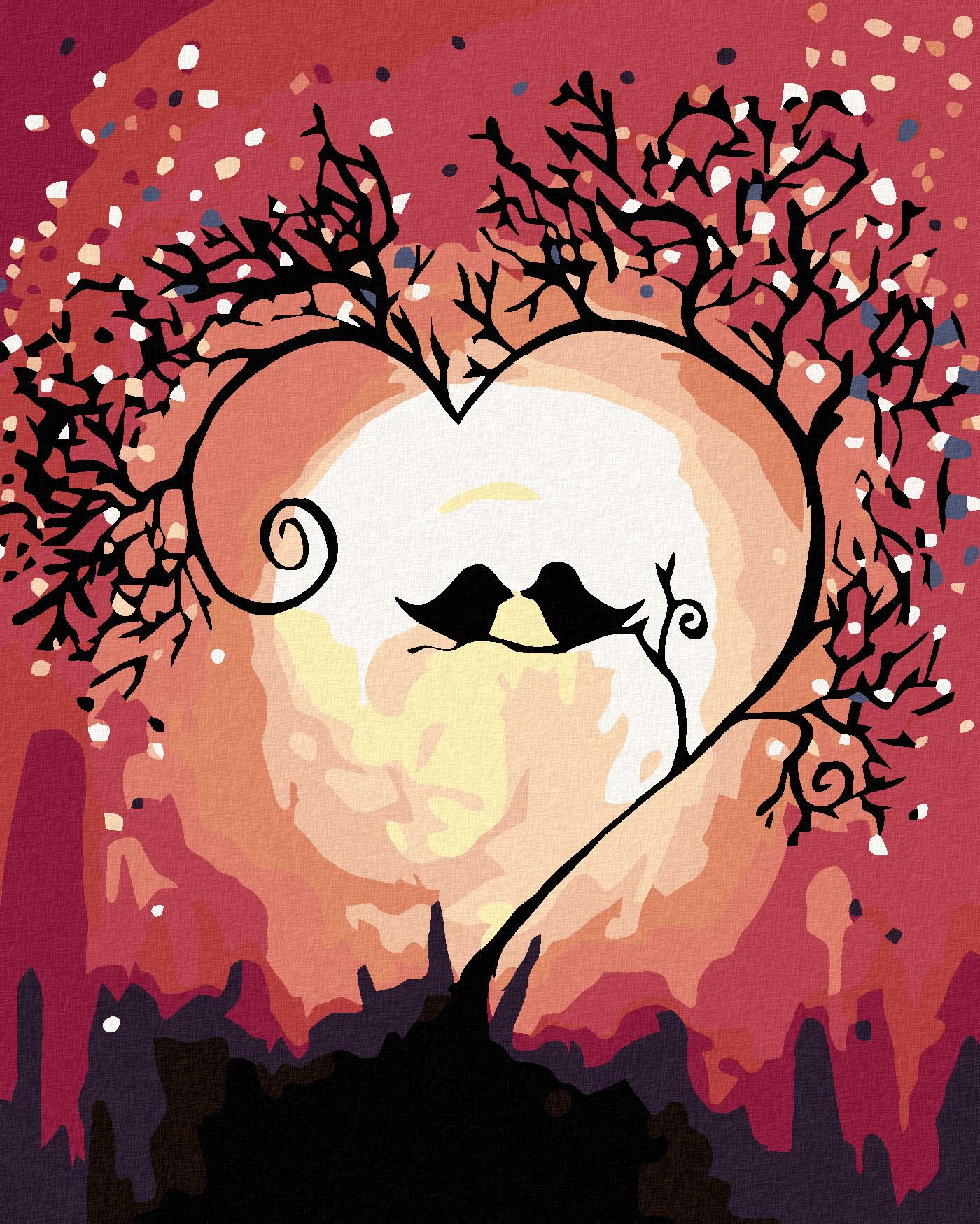 Malen nach Zahlen - VÖGEL IM BAUMHERZEN