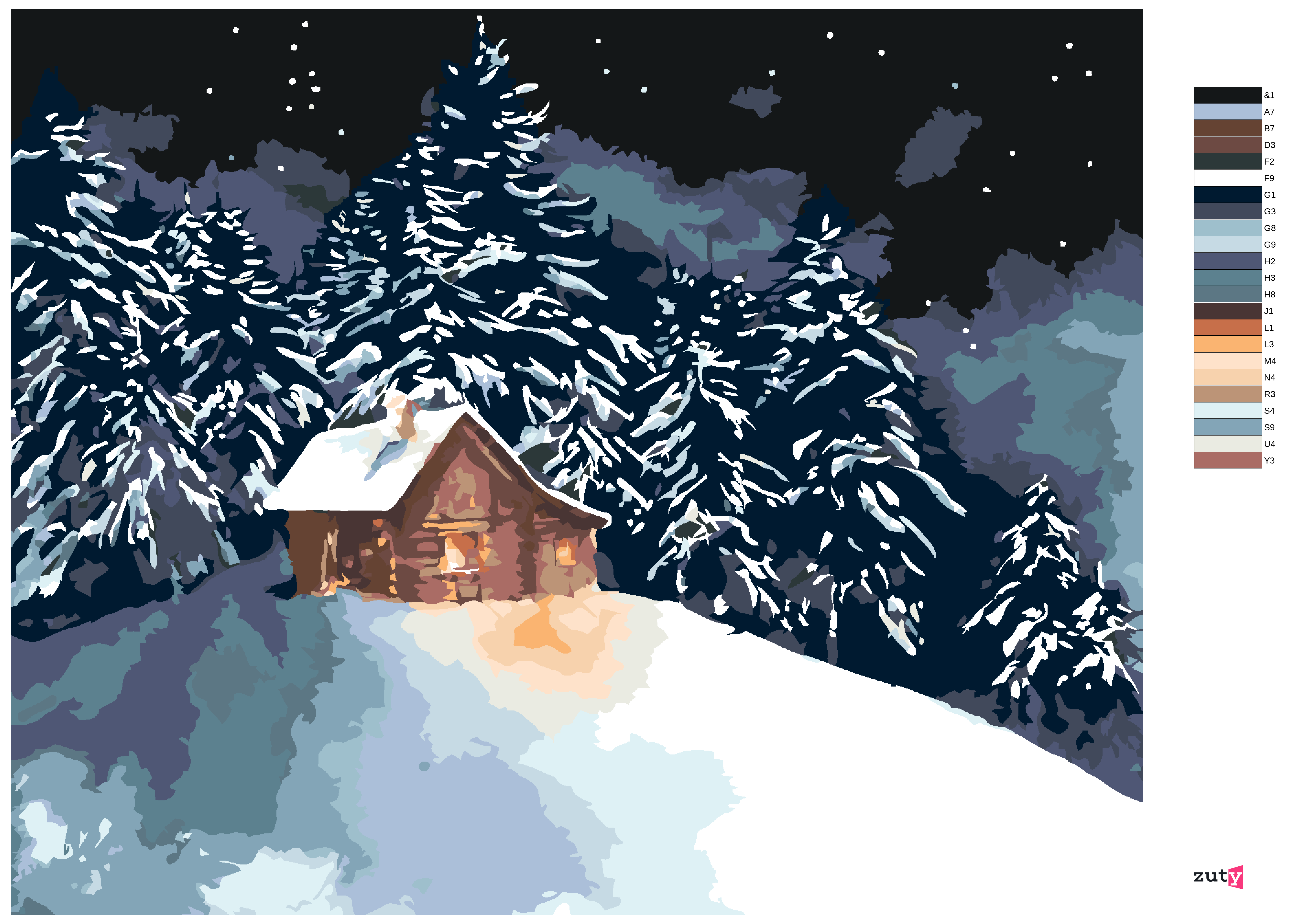 Malen nach Zahlen - WALDBLOCKHAUS AUF EINEM VERSCHNEITEN HÜGEL