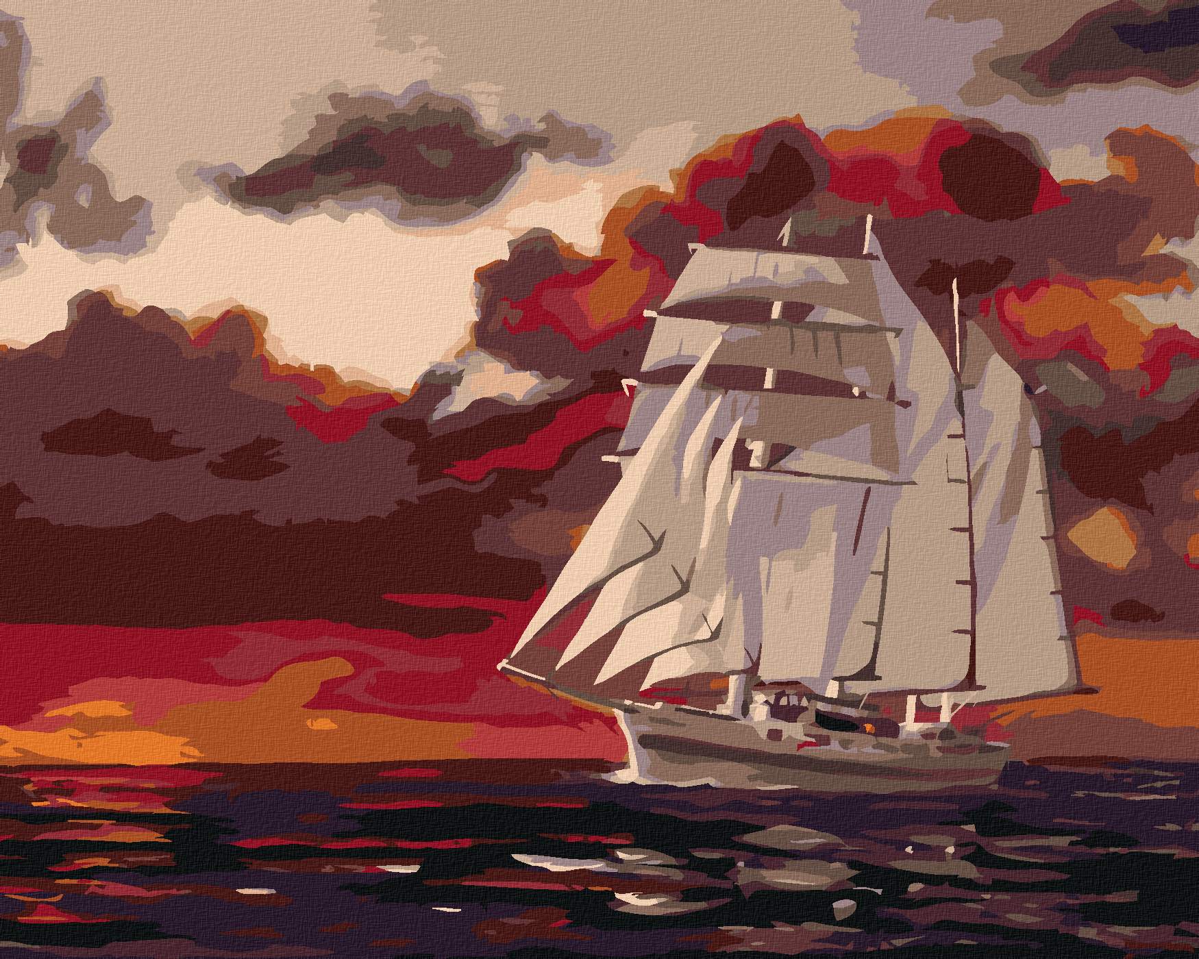 Malen nach Zahlen - WEISSES SEGELSCHIFF IN DER ABENDDÄMMERUNG (D. RUSTY RUST)