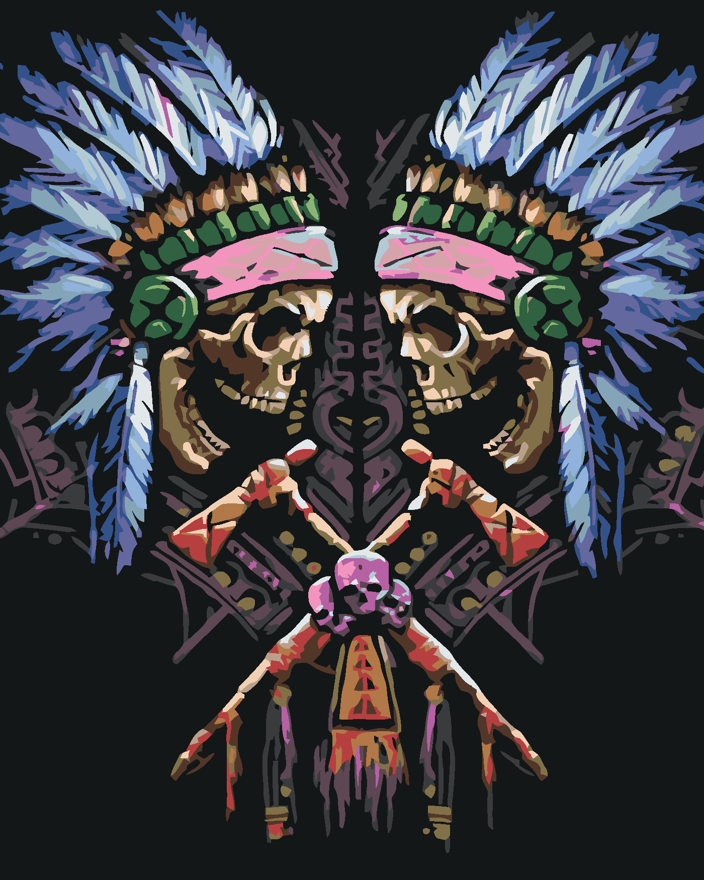 Malen nach Zahlen - ZWEI HÄUPTLINGSTOTENKÖPFE