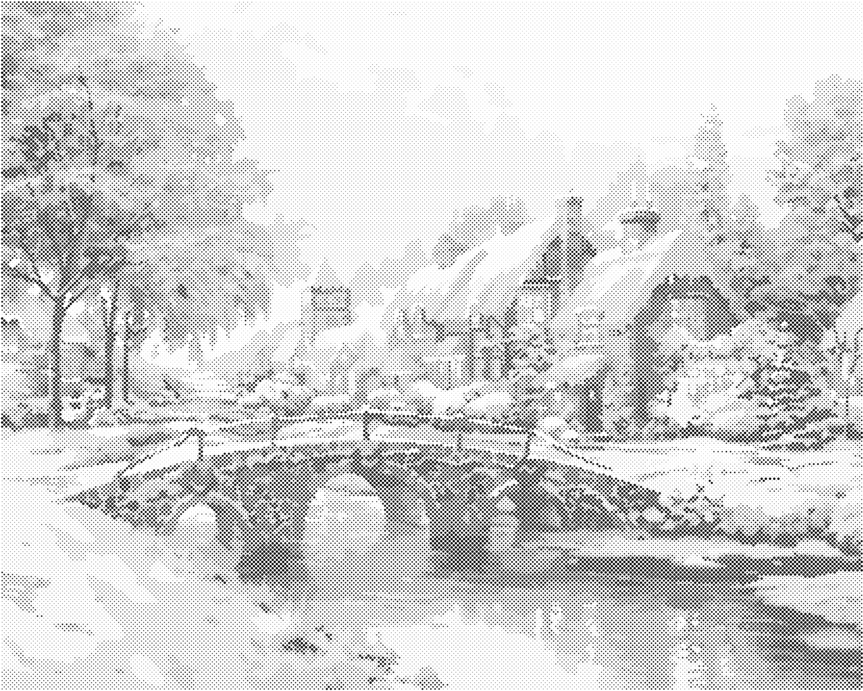 Punktmalerei - BRÜCKE ÜBER EIN GEFRORENES FLÜSSCHEN