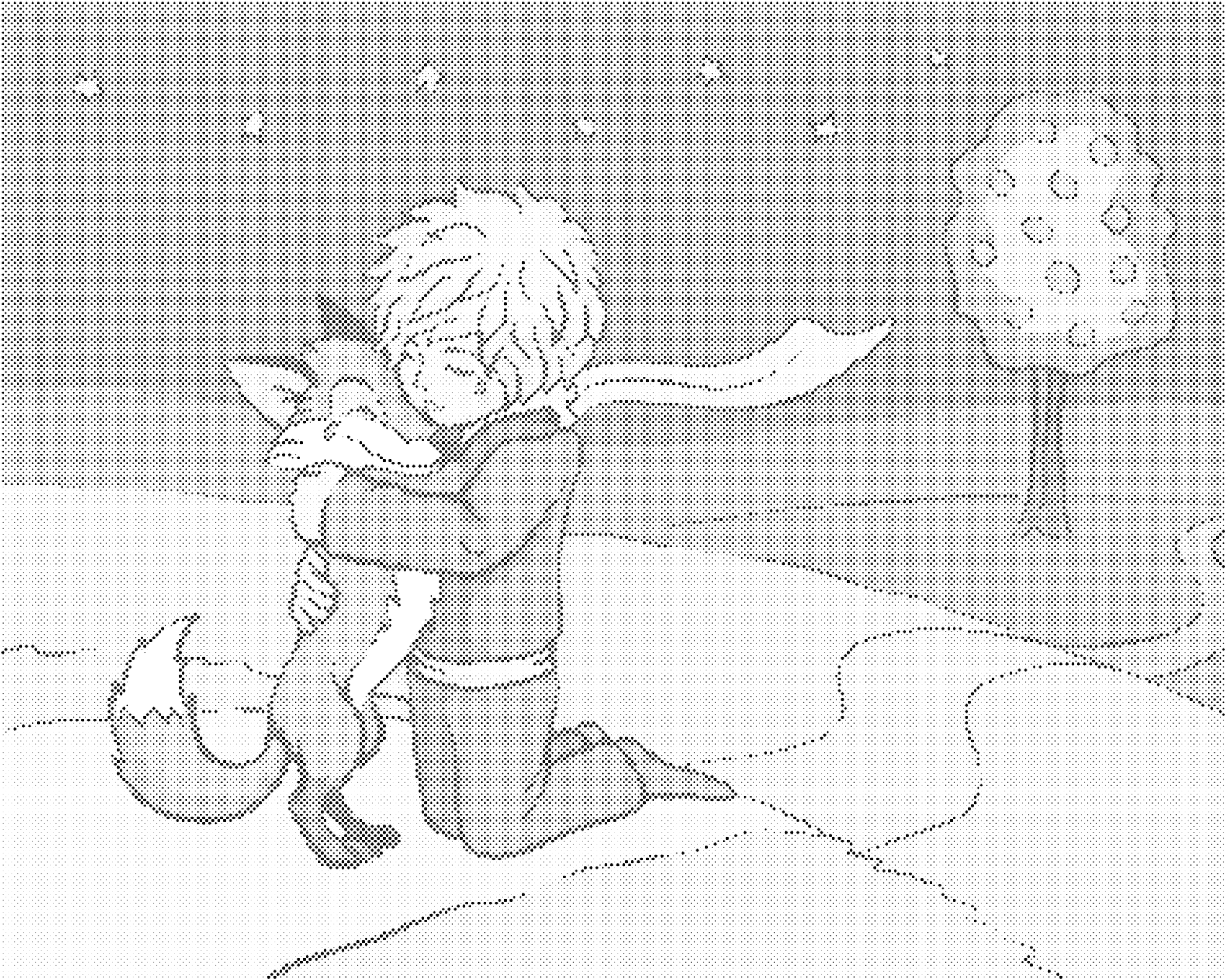 Punktmalerei - DER KLEINE PRINZ UMARMT DEN FUCHS