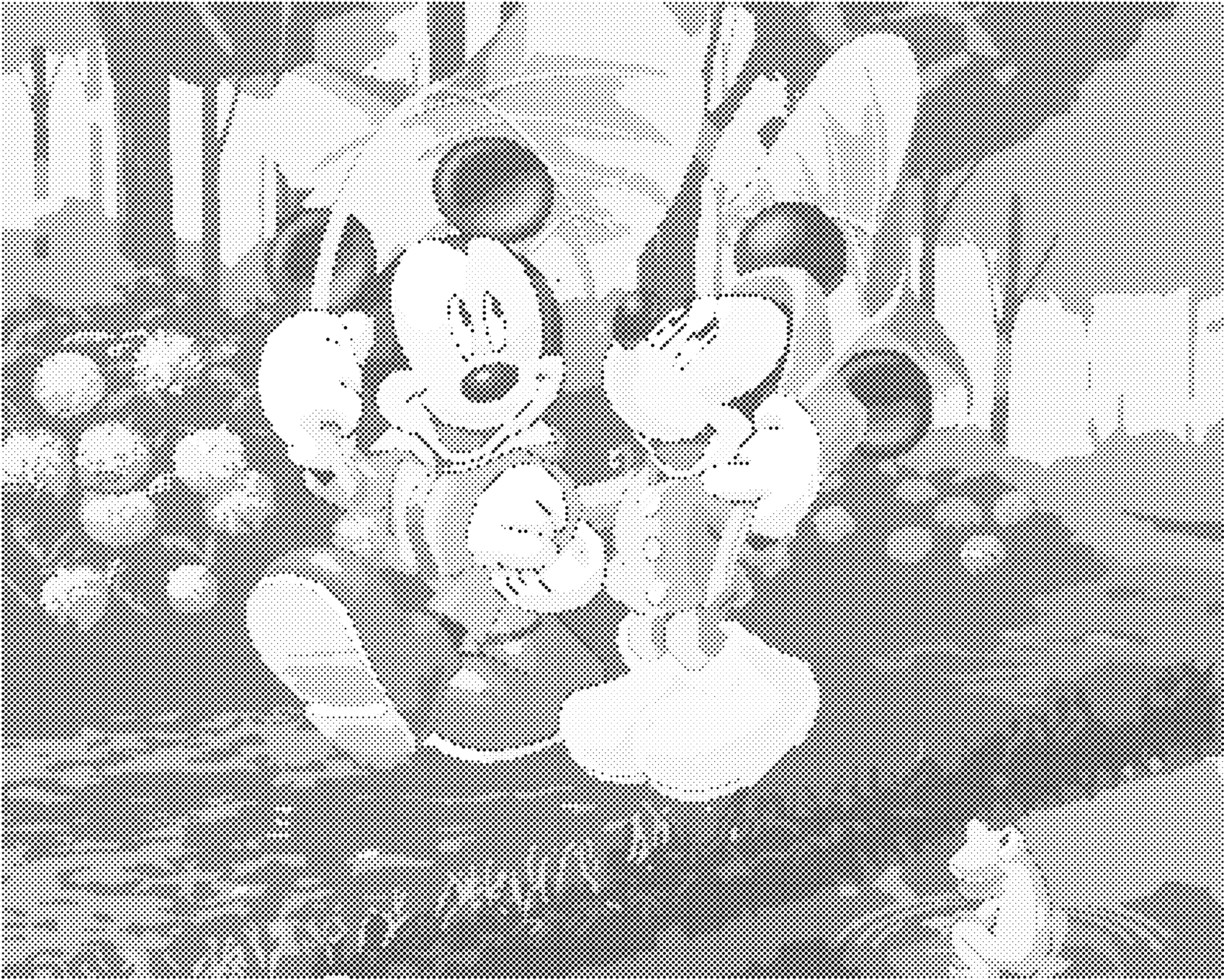 Punktmalerei - MICKEY MOUSE UND MINNIE MIT REGENSCHIRMEN AUS BLÄTTERN